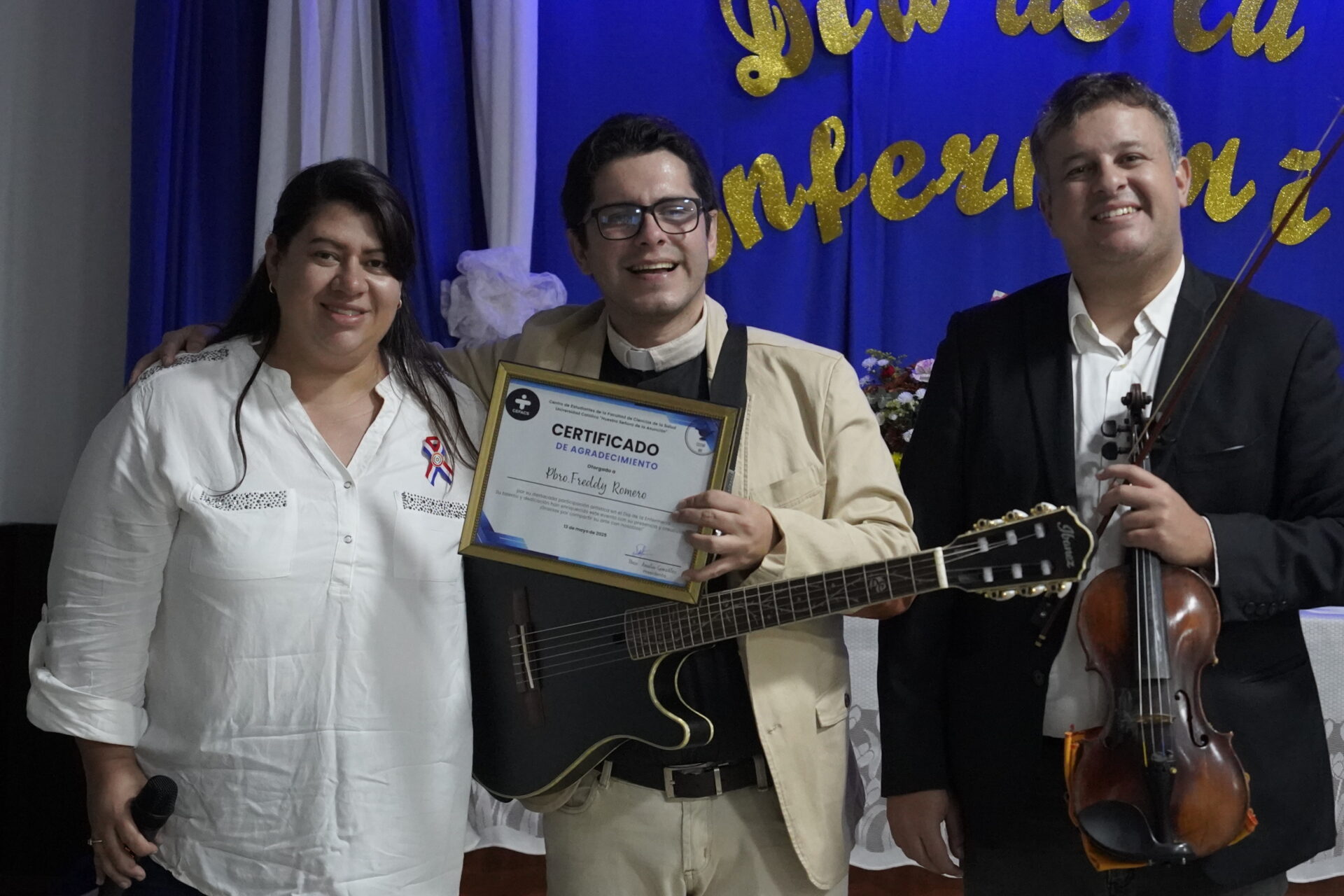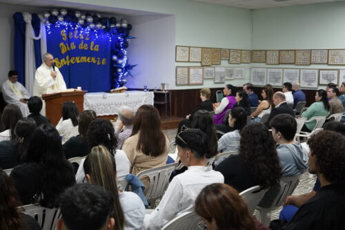La celebración inició con una solemne Santa Misa en Acción de Gracias, presidida por el Rector, Pbro. Dr. Cristino Bohnert Bauer, quien estuvo acompañado por la vicerrectora académica y de investigación, Mag. Rossanna Benítez, el vicerrector administrativo, Mg. Óscar López, y la directora de la carrera de Enfermería, Dra. Madeleine Genest. La presencia de directivos, docentes, estudiantes y egresados realzó aún más el valor de esta fecha tan significativa.
