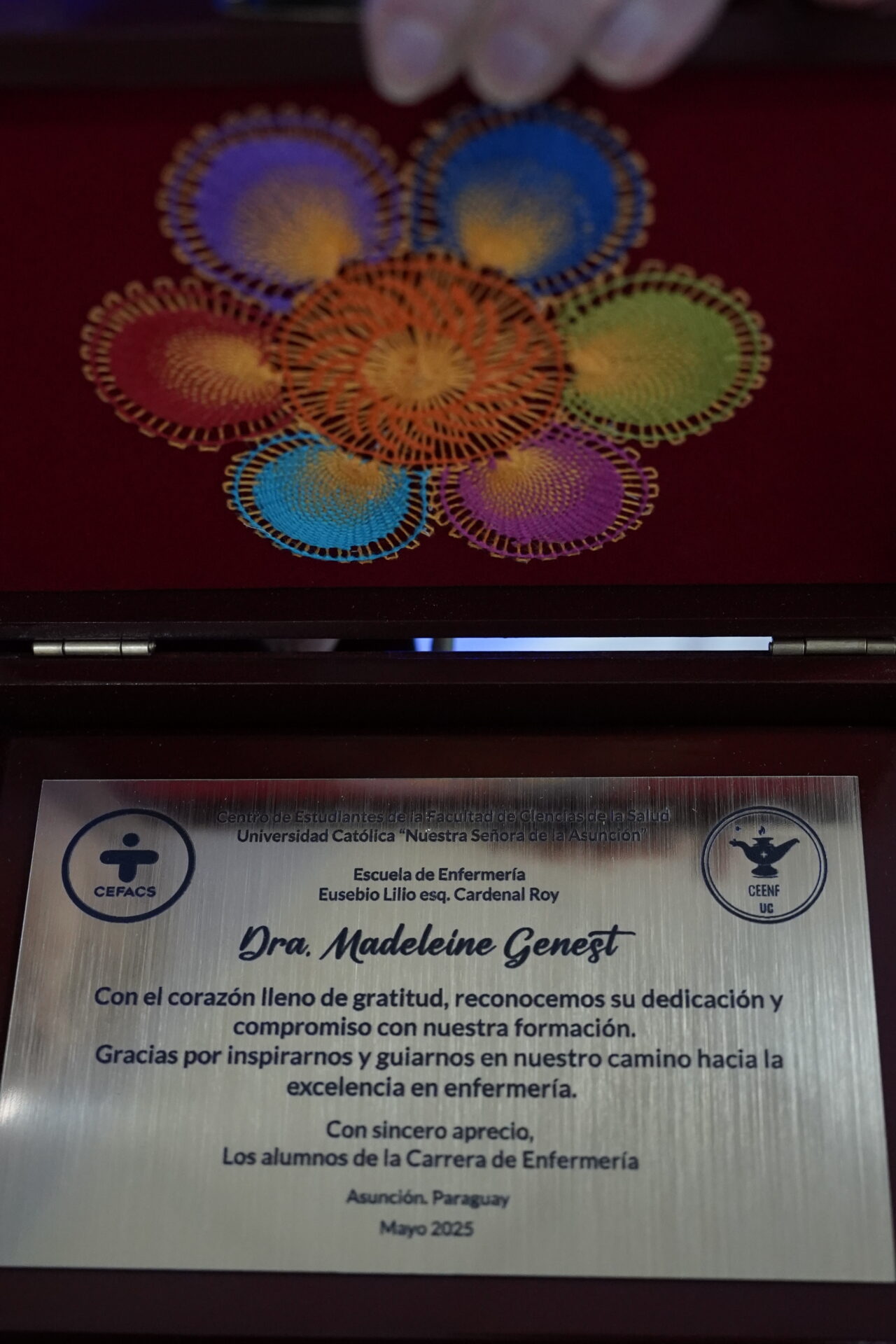 A continuación, se realizó la entrega de una placa conmemorativa en honor a la incansable labor, dedicación y amor con que Madó ha guiado a generaciones de enfermeros y enfermeras. El homenaje se completó con presentaciones artísticas que incluyeron canto, poesía y una representación teatral de la vida de Florence Nightingale, pionera de la Enfermería moderna, símbolo eterno de vocación y servicio.