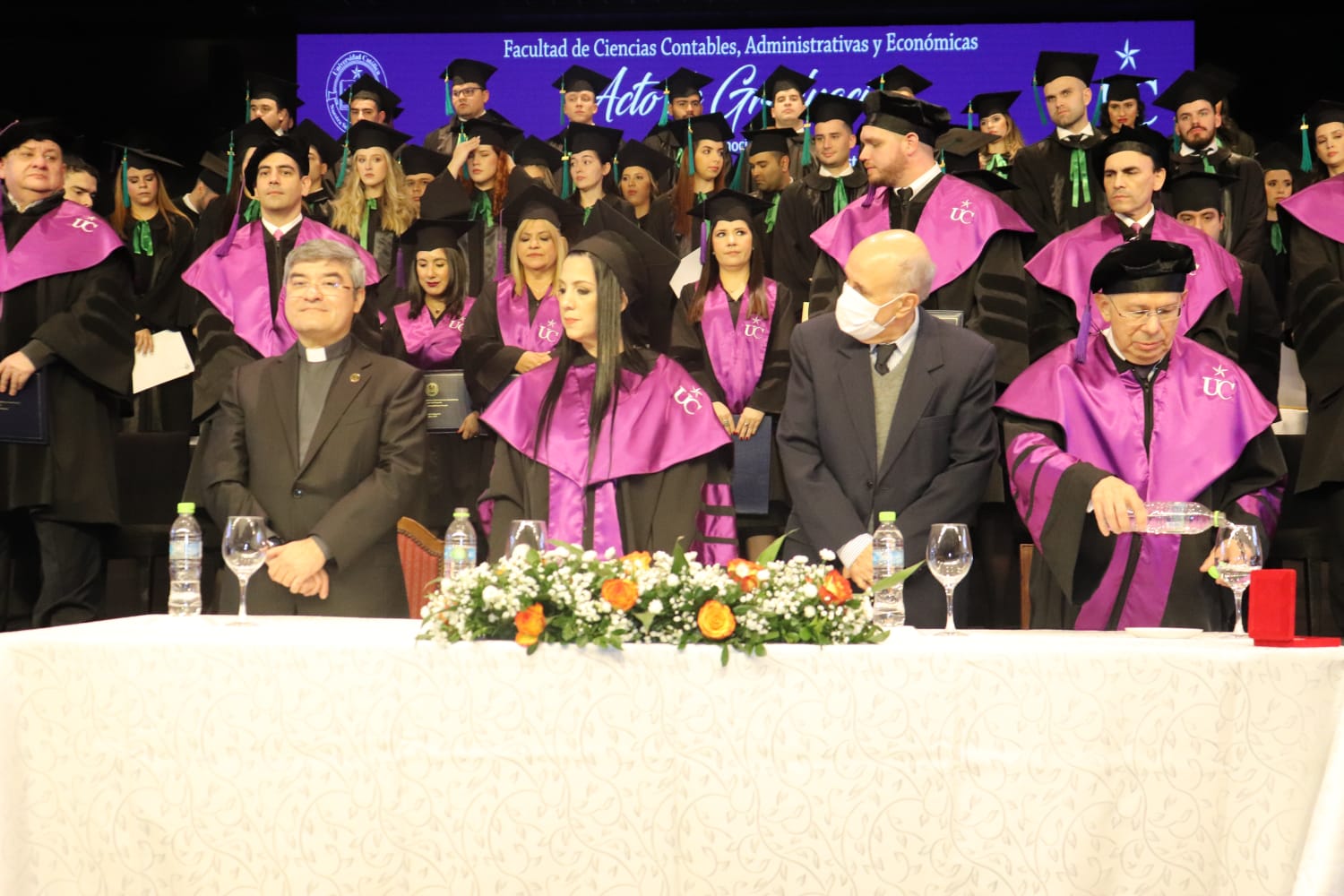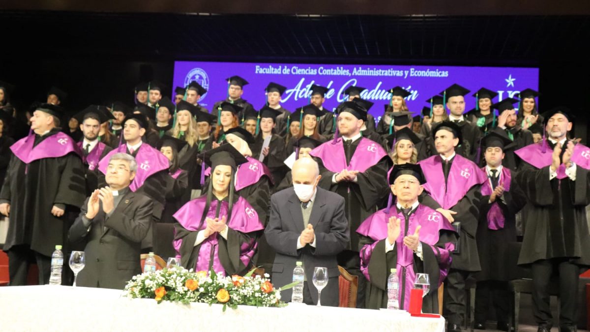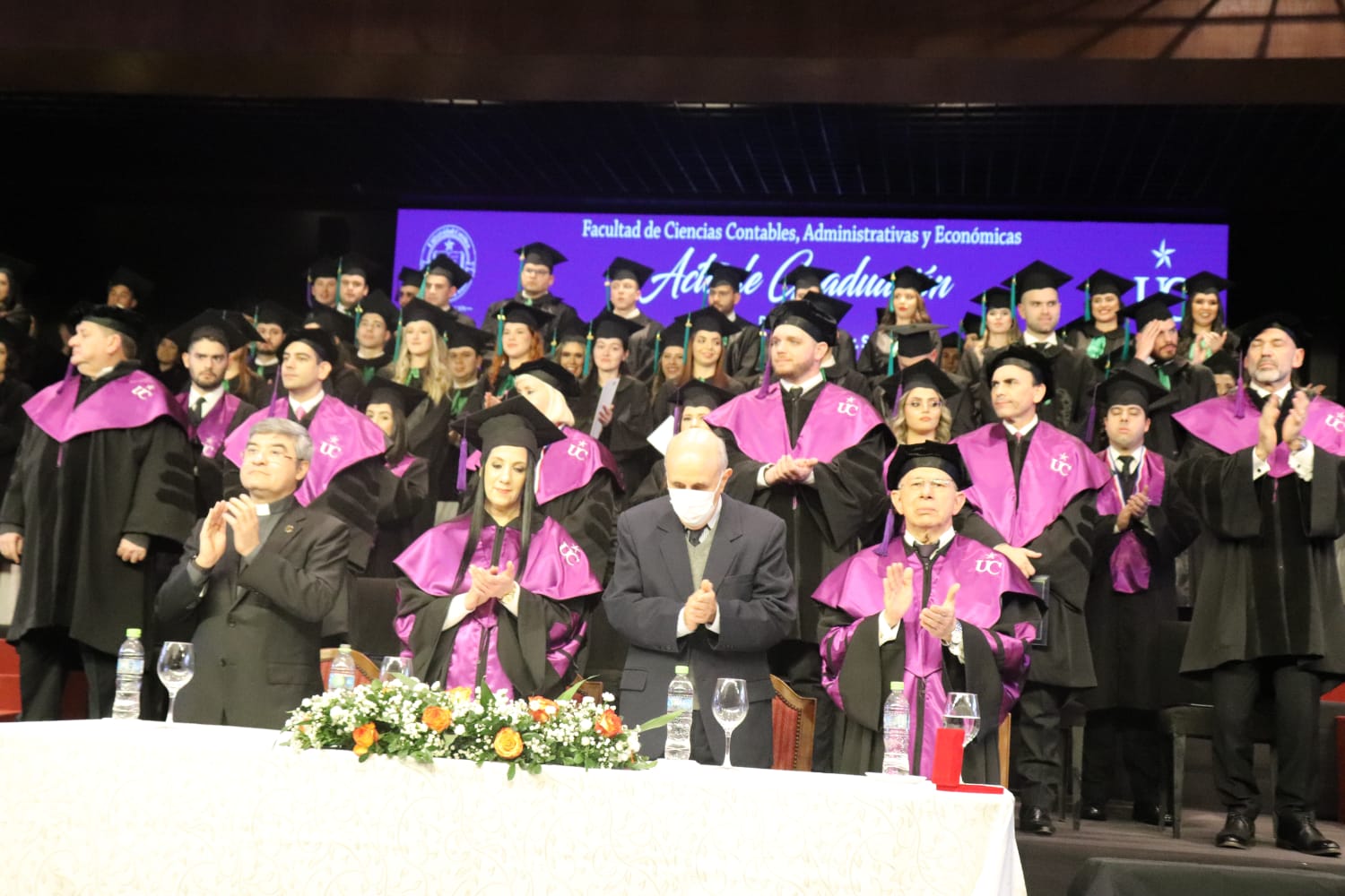 En una emotiva ceremonia, recibieron su título de egresados los nuevos profesionales de las licenciaturas de Ciencias Contables, Marketing, Administración de Empresas, Economía y Comercio Internacional, correspondiente a las Promociones 2021 Año de la Eucaristía y 2022 Año del Laicado y de los programas de posgrado Maestría en Auditoría y Doctorado en Ciencias Contables de la Universidad Católica Campus Asunción.