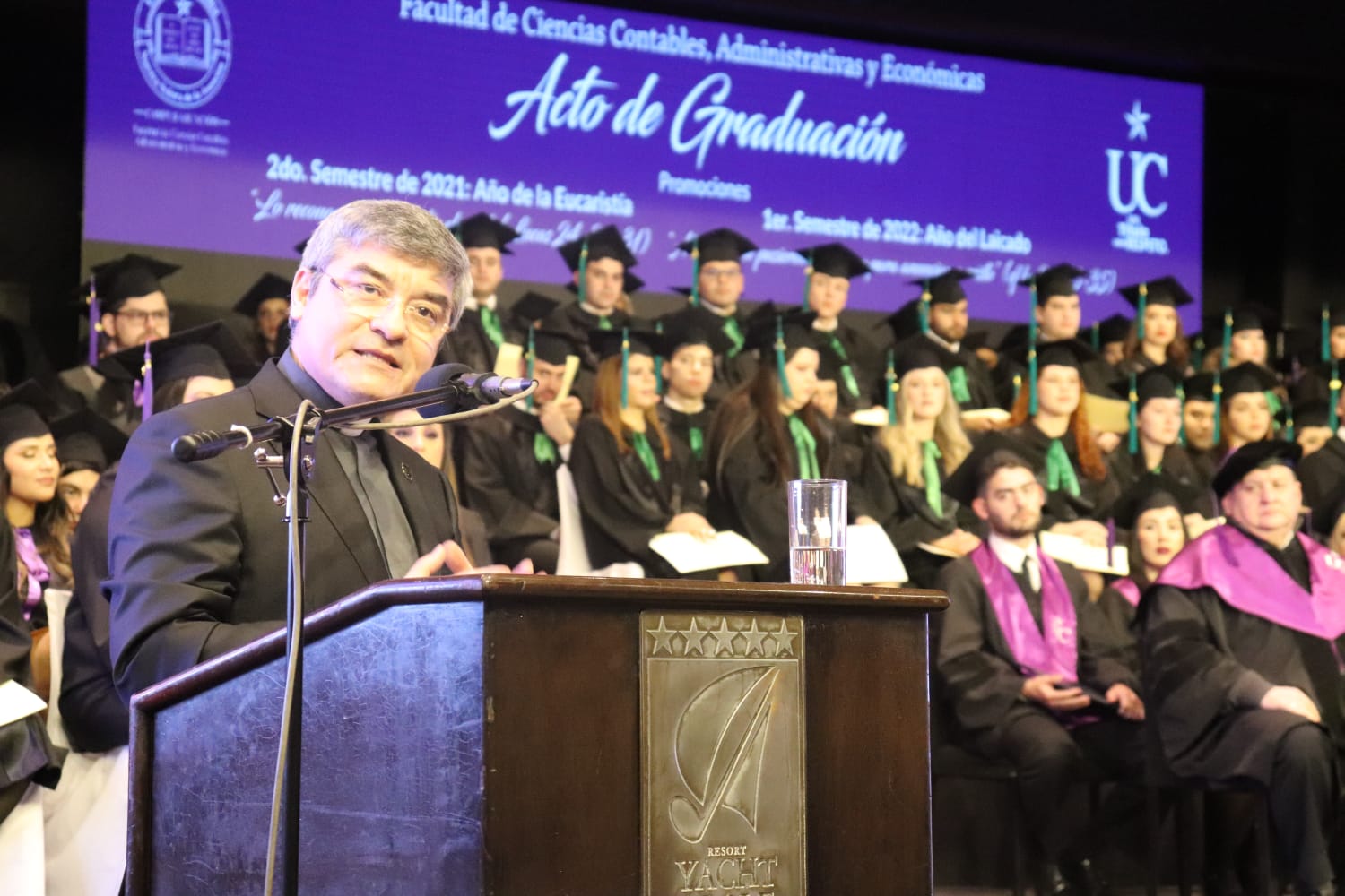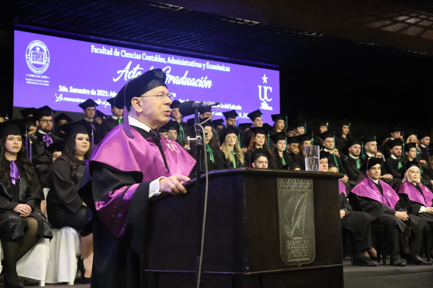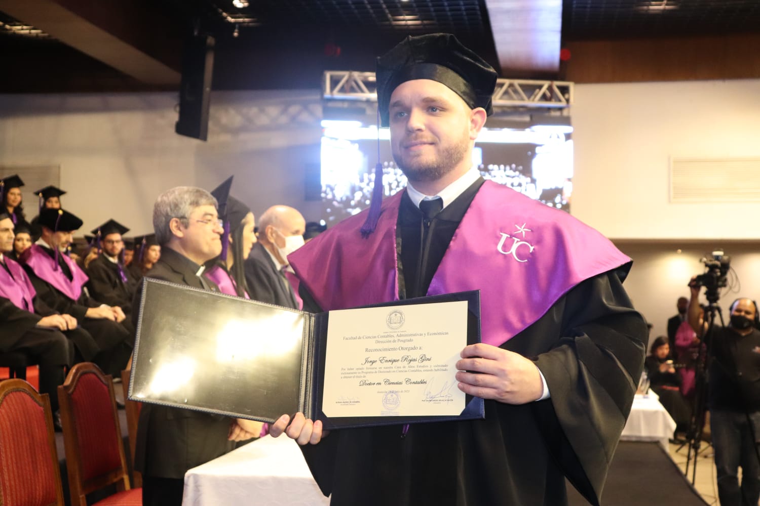 En una emotiva ceremonia, recibieron su título de egresados los nuevos profesionales de las licenciaturas de Ciencias Contables, Marketing, Administración de Empresas, Economía y Comercio Internacional, correspondiente a las Promociones 2021 Año de la Eucaristía y 2022 Año del Laicado y de los programas de posgrado Maestría en Auditoría y Doctorado en Ciencias Contables de la Universidad Católica Campus Asunción.