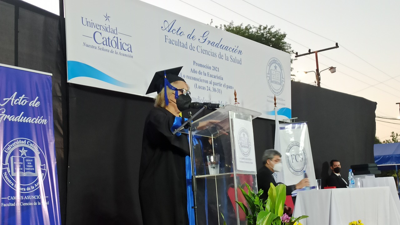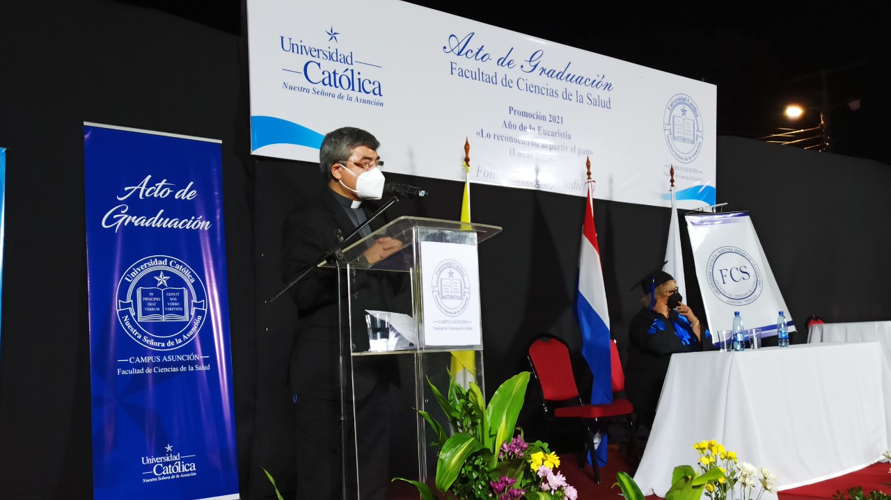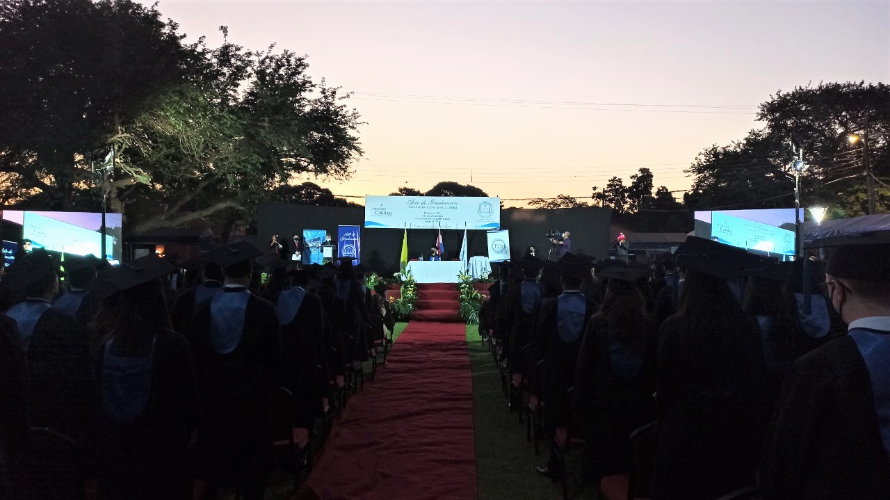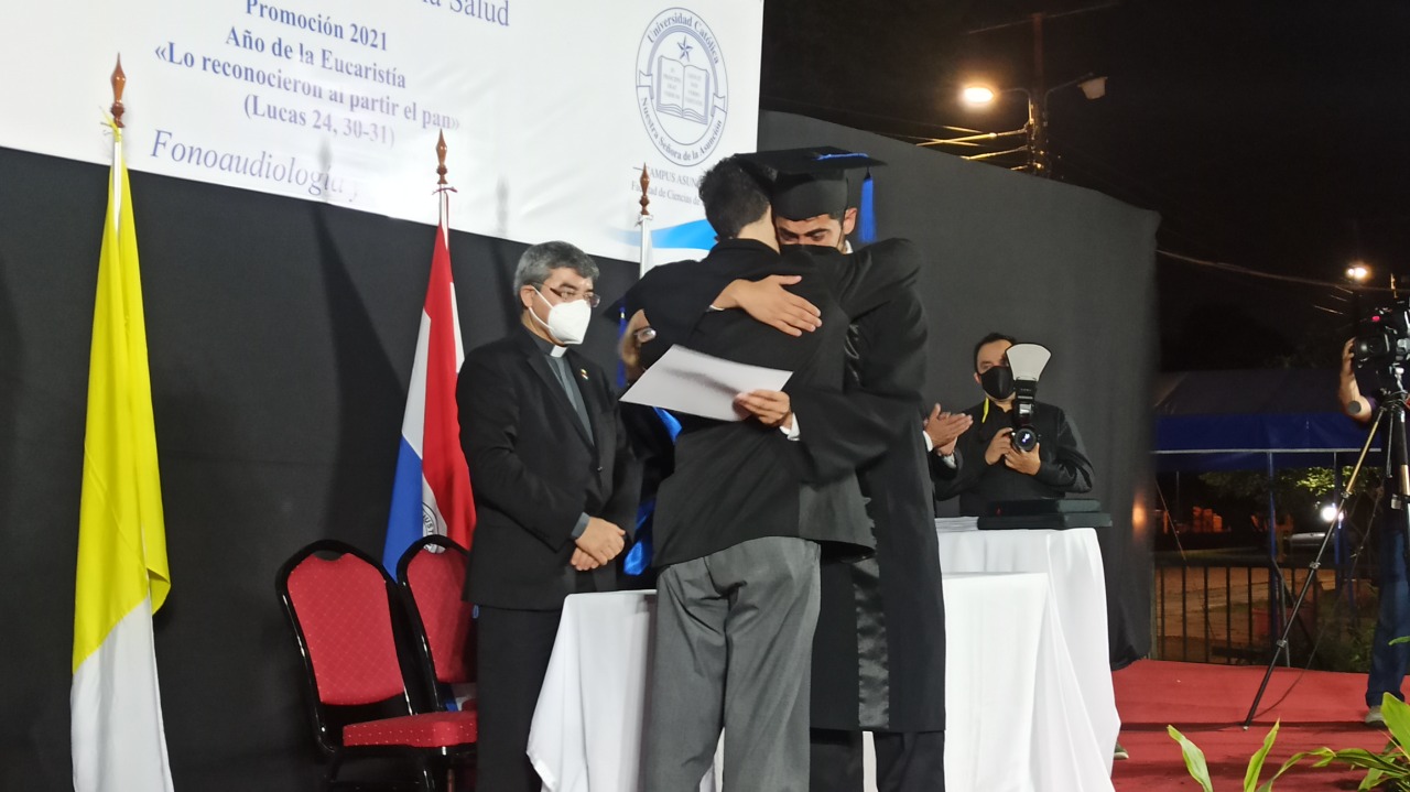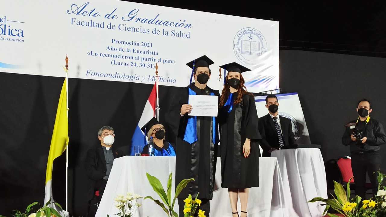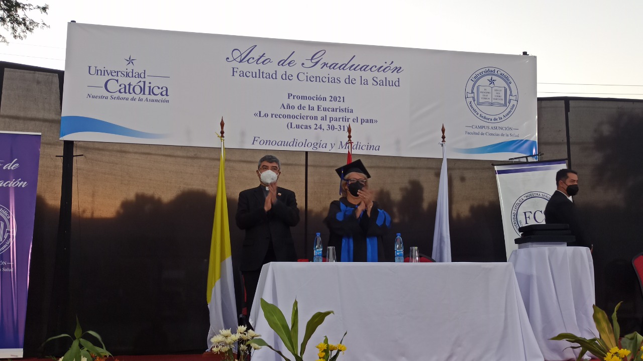 El jueves 16 de diciembre se celebró la ceremonia de graduación de los egresados de las carreras de Fonoaudiología y Medicina de la Facultad de Ciencias de la Salud- Campus Asunción de la Promoción 2021 Año de la Eucaristía «Lo reconocieron a partir del pan», en la Sede Santa Librada.