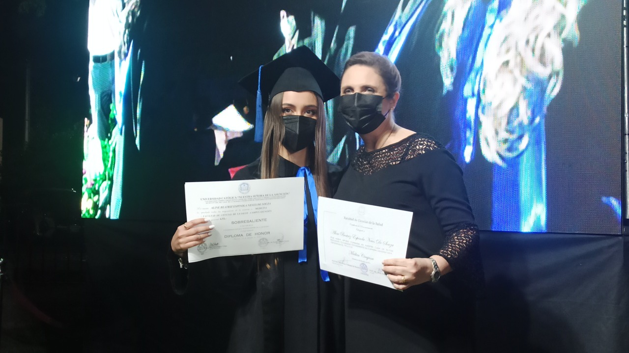 Estuvieron presentes el Rector de la UC Pbro. Dr. Narciso Velázquez Ferreira, Dra. María Magdalena Mayor, Decana de la Facultad, miembros del Consejo de la Facultad de Ciencias de la Salud y autoridades de la UC, docentes, invitados especiales, padres de los egresados y egresadas.