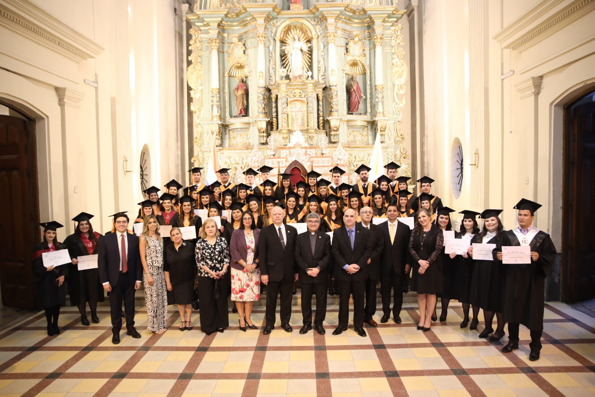 Concluida la ceremonia religiosa, tuvo lugar el acto académico, en el que el Pbro. Dr. Narciso Velázquez Ferreira, como máxima autoridad de la institución, tomó el juramento a los egresados. Posteriormente, se procedió a la entrega de títulos a los nuevos profesionales y al reconocimiento de los estudiantes destacados por su excelencia académica y méritos distinguidos.
