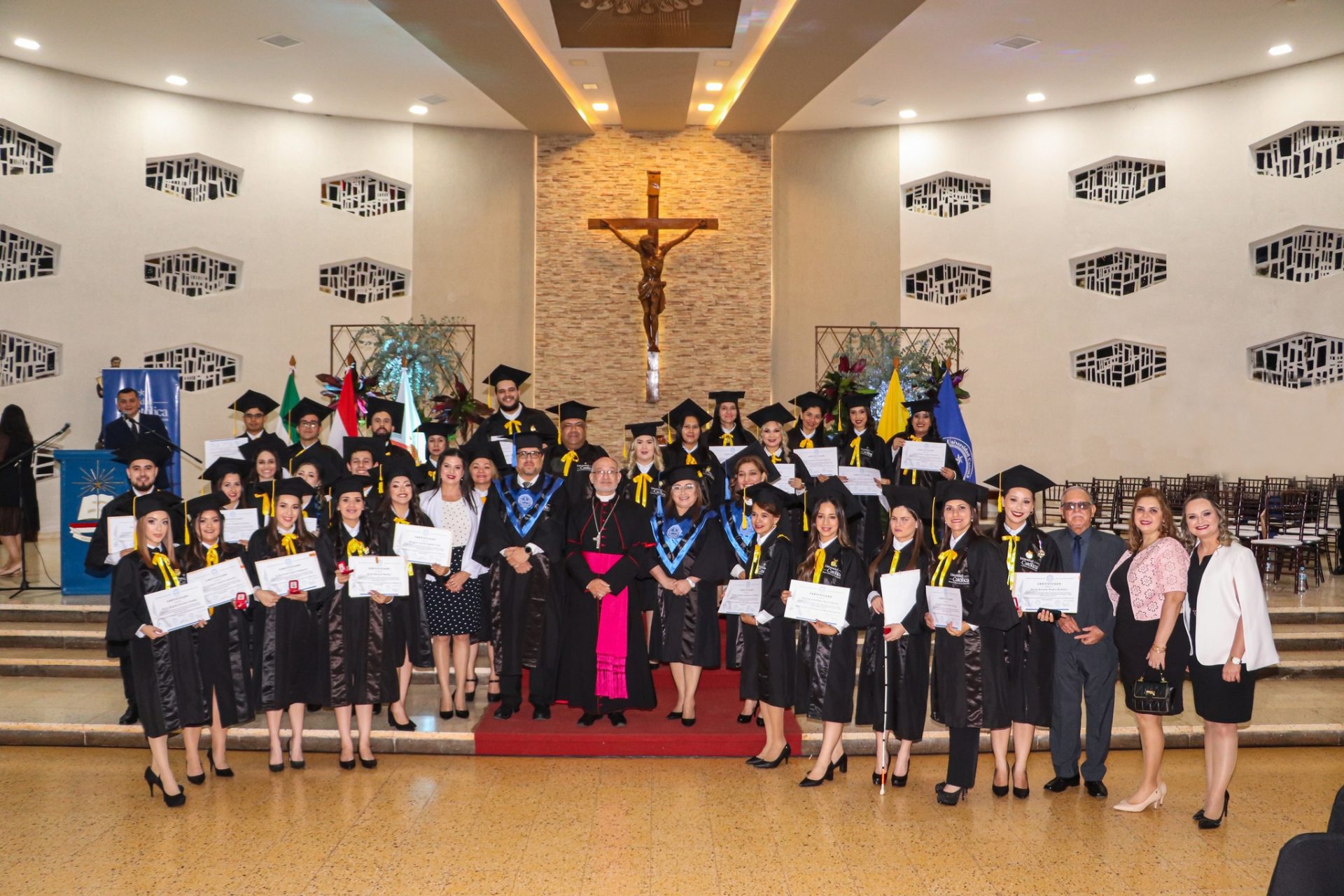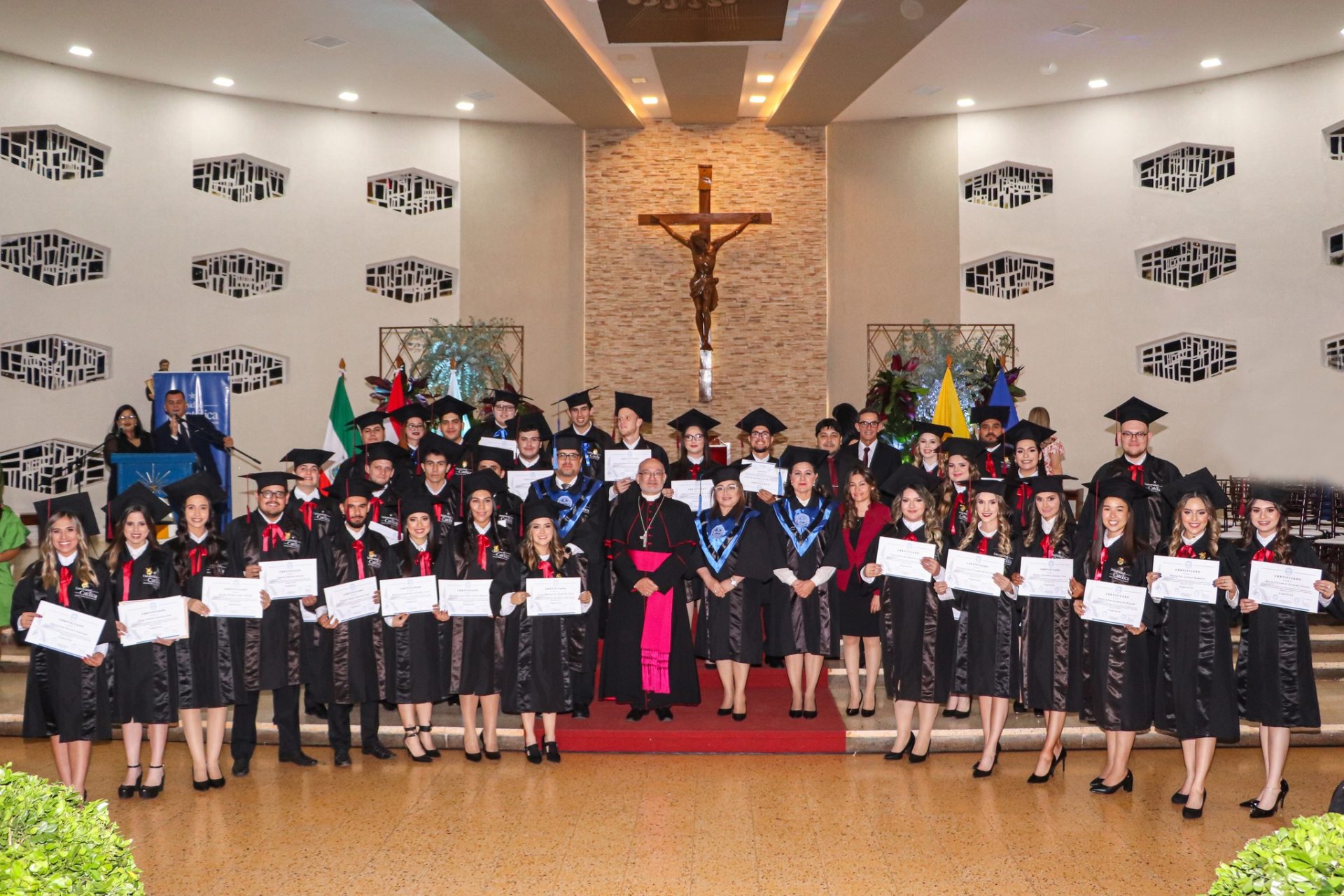 Con mucho júbilo se llevó a cabo la celebración por la graduación de los egresados de la Promoción 2021 en el Año de la Eucaristía bajo el lema “Lo reconocieron al partir el pan” (Lucas 24, 30 -31) de la Universidad Católica Campus Itapúa, con la Santa Misa de Acción de Gracias realizada en la Iglesia Catedral de Encarnación, el miércoles 23 de noviembre.