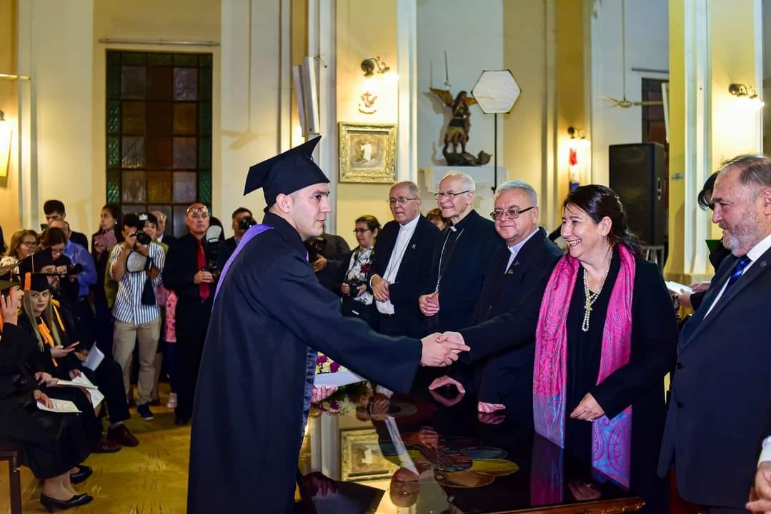 El pasado viernes 12 de agosto se realizó la Ceremonia de Graduación de los estudiantes egresados de las carreras de Administración de Empresas, Ciencias Contables, Derecho y Análisis de Sistemas Informáticos de la Unidad Pedagógica Guarambaré. El acto se realizó en la Parroquia Natividad de María.
