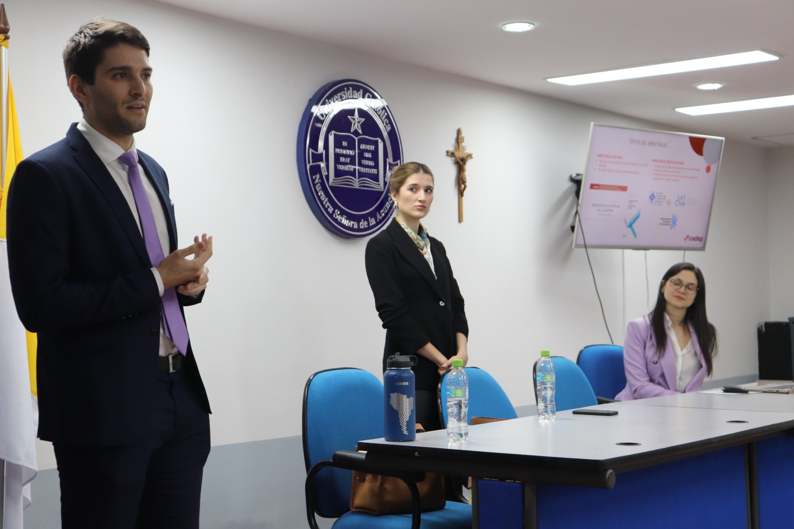 Entre los ponentes se destacaron la Abg. Felicita Argaña, la Abg. Viviana Goralewski Hempel y el Abg. José Antonio Moreno Bendlin, reconocidos especialistas en el ámbito del arbitraje comercial. Durante sus exposiciones, abordaron temas fundamentales relacionados con los procedimientos, la relevancia y los beneficios del arbitraje como mecanismo de resolución de conflictos en el ámbito comercial.