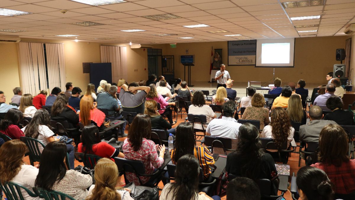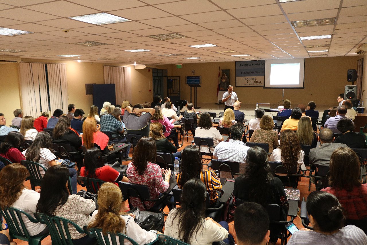 La actividad contó con una excelente concurrencia de docentes. Los facilitadores del encuentro de docentes fueron la Decana de la Facultad de Filosofía y Ciencias Humanas, Prof. Stella Olmedo y el Prof. Víctor Aranda del Dpto. de Pastoral.