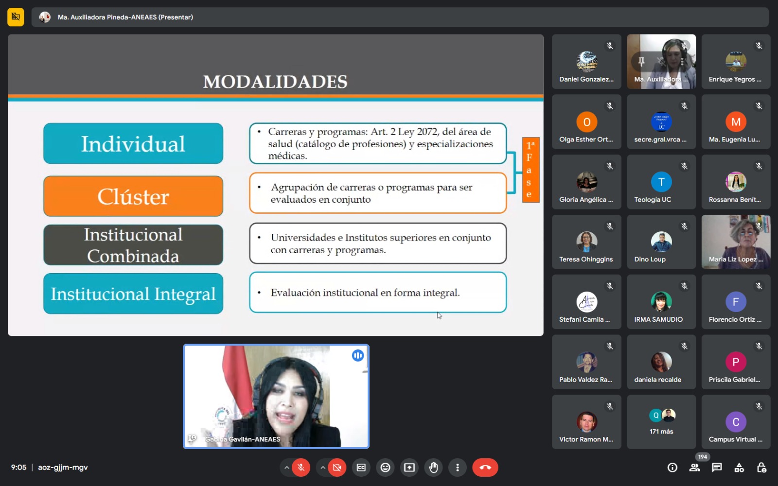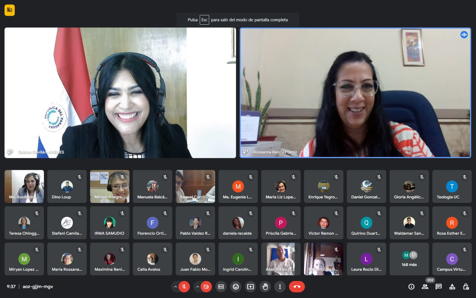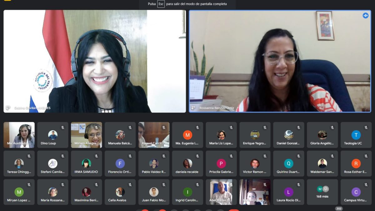 La jornada contó con la asistencia de más de 200 personas conectadas para la presentación del curso, que contó con la destacada presencia de la Dra. Gabina Gavilán, Directora de Autoevaluación de Carreras de Grado, y la Mg. María Auxiliadora Pineda, Jefa de Autoevaluación de Carreras de Grado de la ANEAES, quienes compartieron su experiencia y conocimientos en el tema.