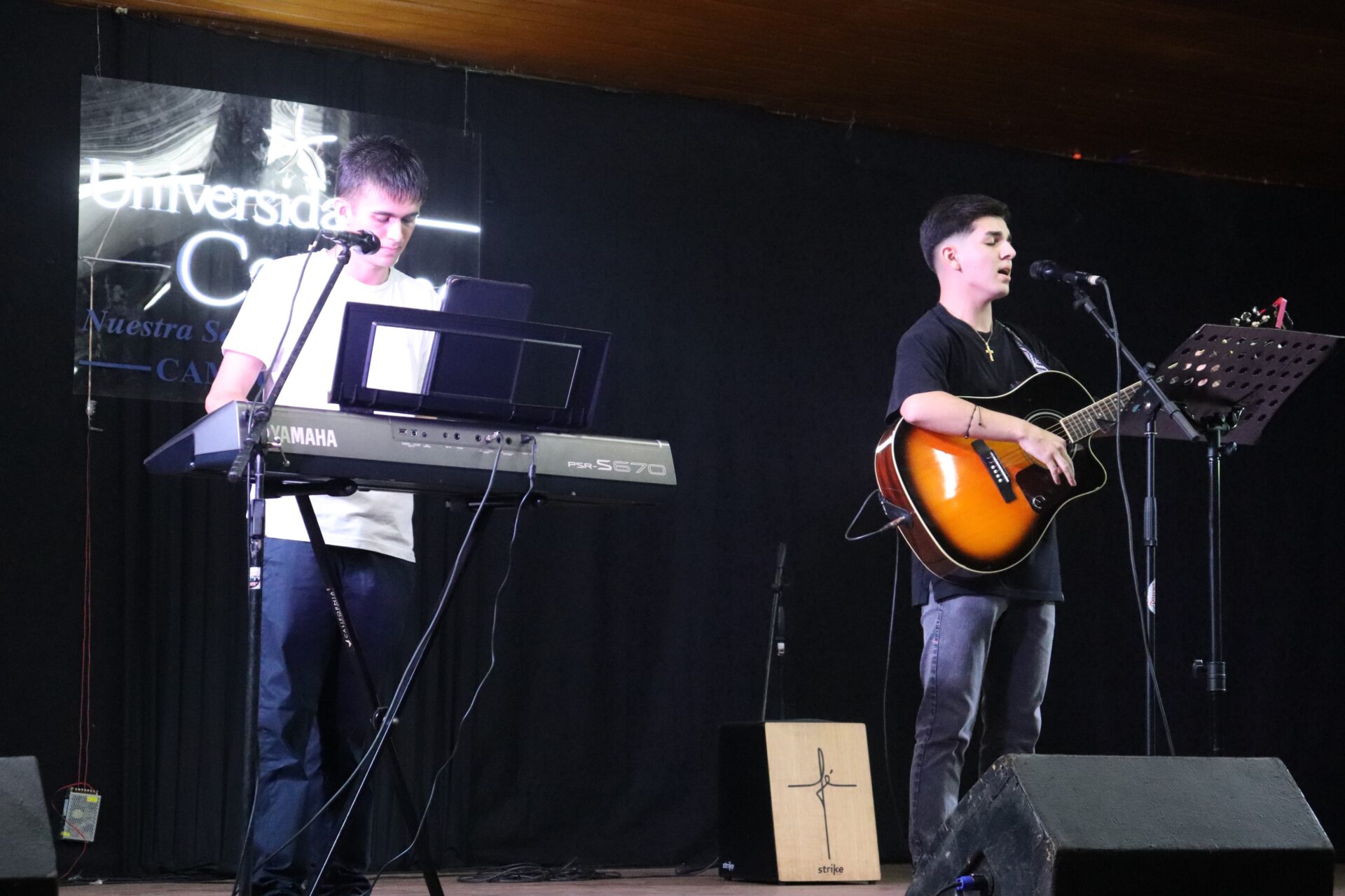 La primera jornada de la Bienal Católica 2024 tuvo un cierre a pura música y canto, con la Peña Intercampus, donde participaron talentosos alumnos y docentes de las diferentes sedes de la Universidad Católica realizado, realizado el miércoles 22 de mayo, en el Salón de la Iglesia Catedral, al térmico de la Misa de Apertura.Gran cantidad de público, familias, directivos de la Universidad Católica y de la Diócesis de la Santísima Encarnación, grupos pastorales, visitantes, disfrutaron de cada participación en un marco ameno de alegría y celebración.1 -Campus Itapúa -Ciencias Económicas – Marcos Gómez – Gustavo Sánchez «The Moonshines Power-Duo» (canto)2 Campus Itapúa- Filosofía y Ciencias Humanas – Ana Paula Arévalos – Keila Duette «Mborayhu asy» (canto)3 Campus Itapúa -Ciencias Jurídicas – Matias Zayas – Elias Roa – Ana Barrios – Fede Padía – Lucas Ibarra «Cafuné tek it at 101.9 kink» «New West those eyes» «3. The Walters i love you so» (canto)4 Campus Itapúa -Ciencias de la Salud y Ciencias y Tecnología – Carlos Cussigh – Kevin Flores – Luis Britez – Sara Venialgo «Popurrí» (canto)5 Campus Itapúa- Facultad de Ciencias Económicas – Luz Loblein «Mis noches sin ti»6 Campus Itapúa -CEUCE – Grecia Fleitas «Amárrame» «Mi Enfermedad» «I’m still standing»7 Campus Guairá -Ciencias de la Salud – Manuela González – Lujan Ortega – Cecilia Acuña – Diego Vázquez – Diego Bogarin – Gianinna Villalba – Indra Velázquez – Eva Ramírez – Victor Martínez – Diego Santacruz «Danza Paraguaya» (baile)8 Campus Guairá -Ciencias de la Salud – Sol Estigarribia «El sol no regresa» «Hoy tengo ganas de ti» (canto)9 San Ignacio – Marketing – Derecho – Contador Público Nacional – Comercio Internacional – Administración de Empresas – Gastón Paredes – Ana Quiñones – Araceli Vallejos – Bianca Quiñonez – Marcia Genez – Alexandra Llano – Fernando Domínguez – Lorena Medina – Luis María Arias – Valeria Segovia «Maerapa reikuaase» «Brisa Suave» (canto)10 Campus Alto Paraná- Ing. Civil (CyT) – Aldo Mareco – Kevin Saucedo «Selección de guaranias» (canto)11 Campus Alto Paraná -Ing. Civil (CyT) – Kevin Saucedo – Aldo Mareco «Es por Cristo – No te duermas» (canto)12 Campus Itapúa- Ciencias de la Salud – Clara Giménez «Tu promesa no tarda» (declamación)