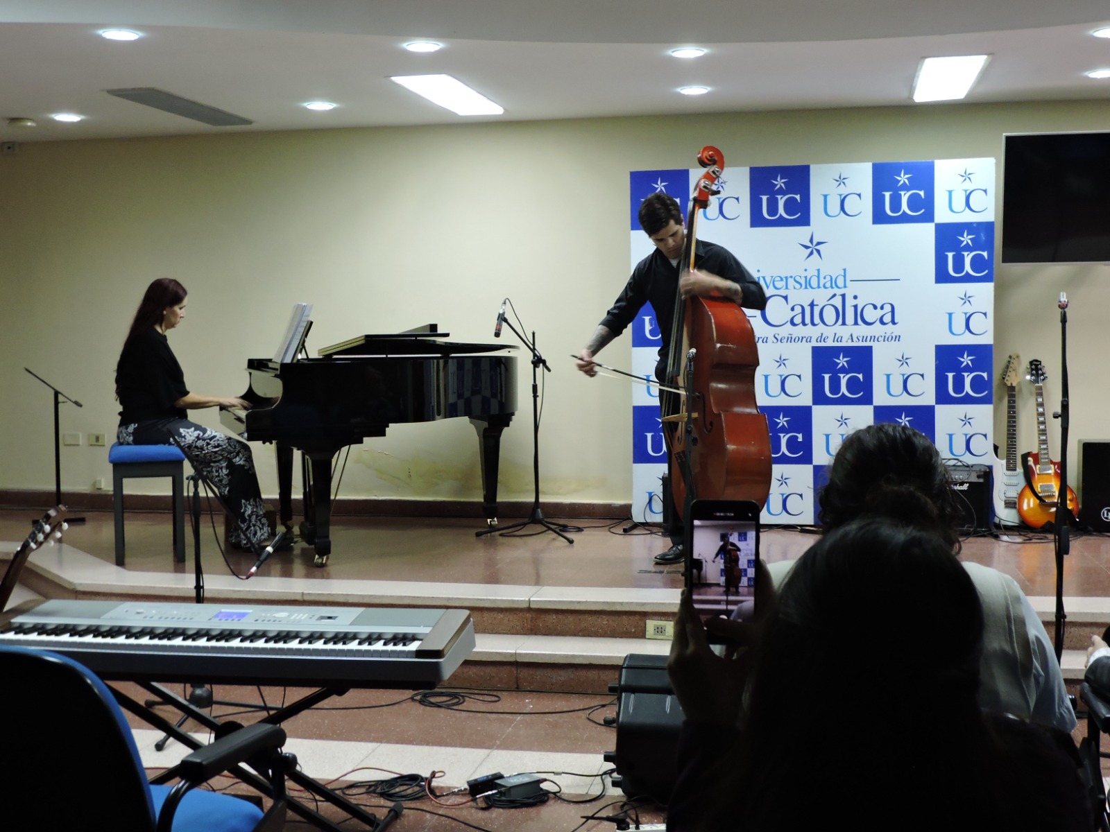Las canciones fueron interpretadas en contrabajo, guitarra, bajo, piano, violín y canto por nuestros virtuosos artistas del Conservatorio Musical y el Coro Campus Asunción, que se llevaron sendos aplausos y vítores de los asistentes presentes.