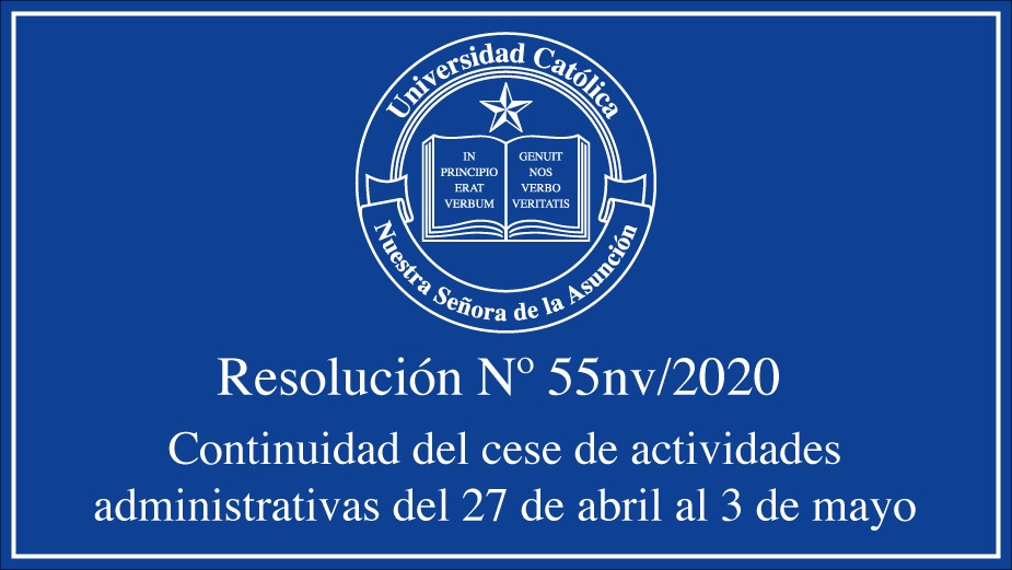“QUE AMPLÍA LA RESOLUCIÓN N° 54nv/2020 REFERENTE A LA SUSPENSIÓN DE LAS ACTIVIDADES ADMINISTRATIVAS EN LOS CAMPUS UNIVERSITARIOS Y UNIDADES PEDAGÓGICAS DE LA UNIVERSIDAD CATÓLICA «NUESTRA SEÑORA DE LA ASUNCIÓN» Y ESTABLECE MEDIDAS ACADÉMICAS”