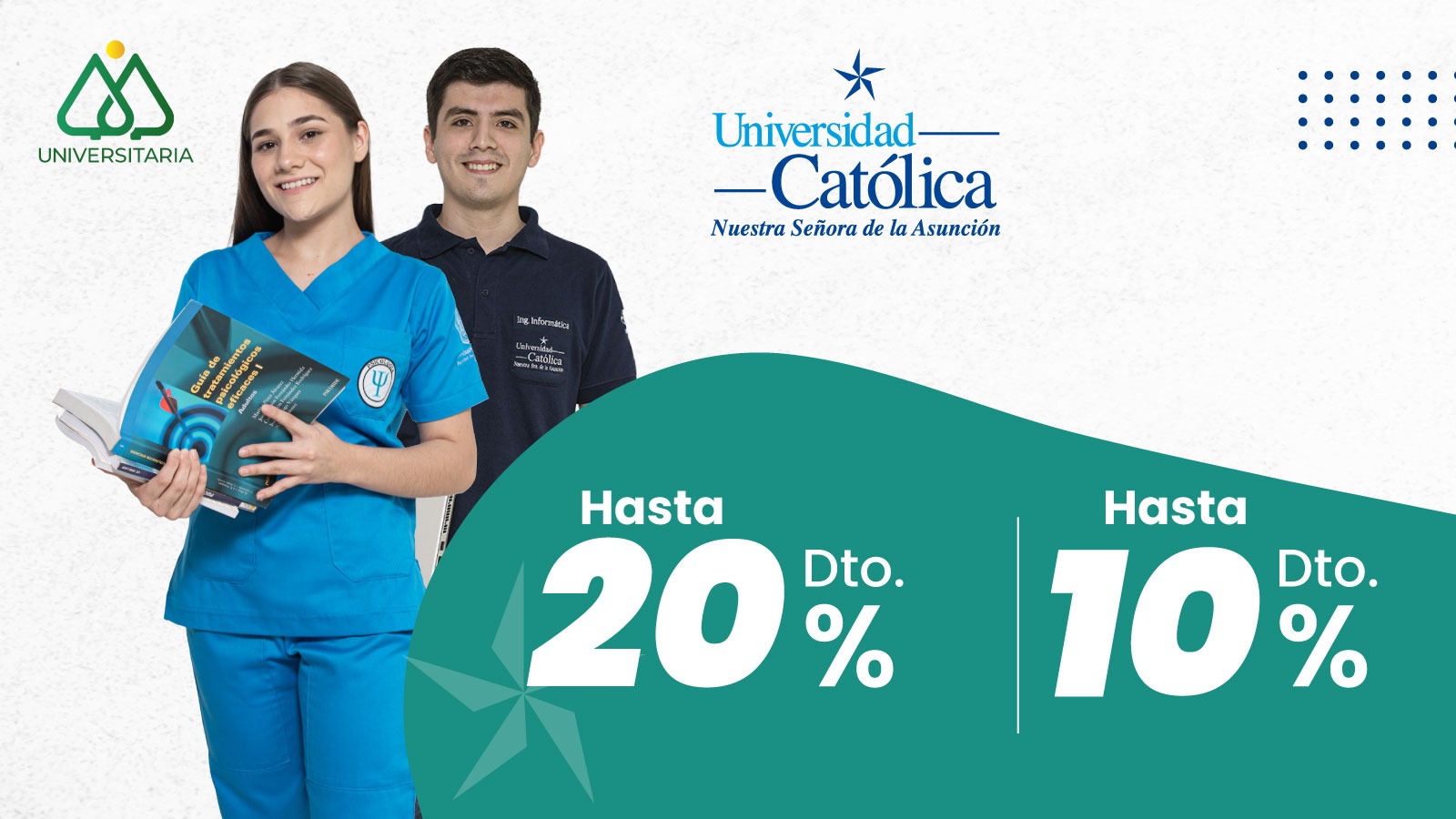 A través del convenio interinstitucional entre la Universidad Católica «Nuestra Señora de la Asunción» y la Cooperativa Universitaria, los estudiantes podrán acceder al 20% de descuento en el pago de semestre utilizando como medio de pago las tarjetas de crédito de la Cooperativa Universitaria: Panal, Cabal o Mastercard y 10% en el pago mensual, a partir del 05 de agosto y hasta el 10 de setiembre.