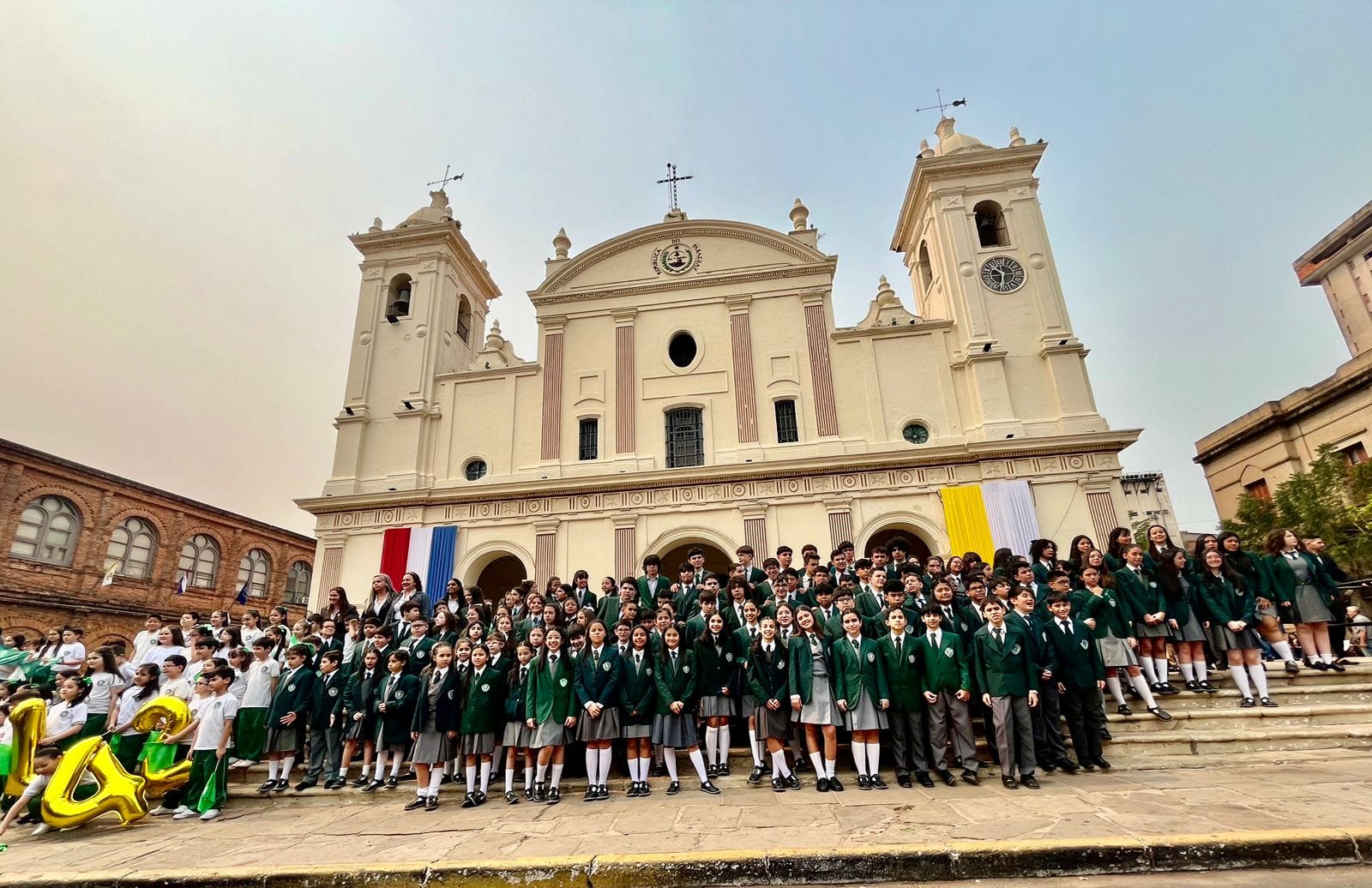 La jornada comenzó a las 10:00, cuando los participantes, uniformados de gala y portando las banderas, nacional, papal e institucional, dieron inicio a la caminata desde la Plaza Uruguaya. La comunidad escolar avanzó por las calles céntricas de la capital. El recorrido finalizó en la Catedral Metropolitana de Asunción.
