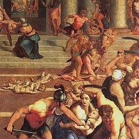 El Evangelio de Mateo relata la matanza: Herodes llamó a los Sumos Sacerdotes para preguntarles en qué sitio exacto iba a nacer el rey de Israel, al que habían anunciado los profetas. Ellos le contestaron: «Tiene que ser en Belén, porque así lo anunció el profeta Miqueas diciendo: «Y tú, Belén, no eres la menor entre las ciudades de Judá, porque de ti saldrá el jefe que será el pastor de mi pueblo de Israel» (Miq. 5, 1).