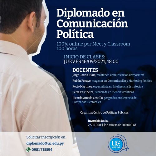 El 19 de septiembre de 2021 inicia las clases del curso Diplomado en Comunicación Política de la Universidad Católica «Nuestra Señora de la Asunción», en la modalidad virtual a través del uso de herramientas digitales de enseñanza. Dirigido a asesores y consultores en comunicación del sector público y privado, comunicadores institucionales u organizacionales, periodistas, profesionales de ramas conexas (Sociología, Letras, Politología y otras áreas de las Ciencias Sociales) e integrantes de ONG’s y movimientos sociales.