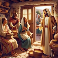 En aquel tiempo, entró Jesús en un poblado, y una mujer, llamada Marta, lo recibió en su casa. Ella tenía una hermana llamada María, la cual se sentó a los pies de Jesús y se puso a escuchar su palabra. Marta, entre tanto, se afanaba en diversos quehaceres, hasta que, acercándose a Jesús, le dijo: «Señor, ¿no te has dado cuenta de que mi hermana me ha dejado sola con todo el quehacer? Dile que me ayude». El Señor le respondió: «Marta, Marta, muchas cosas te preocupan y te inquietan, siendo así que una sola es necesaria. María escogió la mejor parte, y nadie se la quitará».