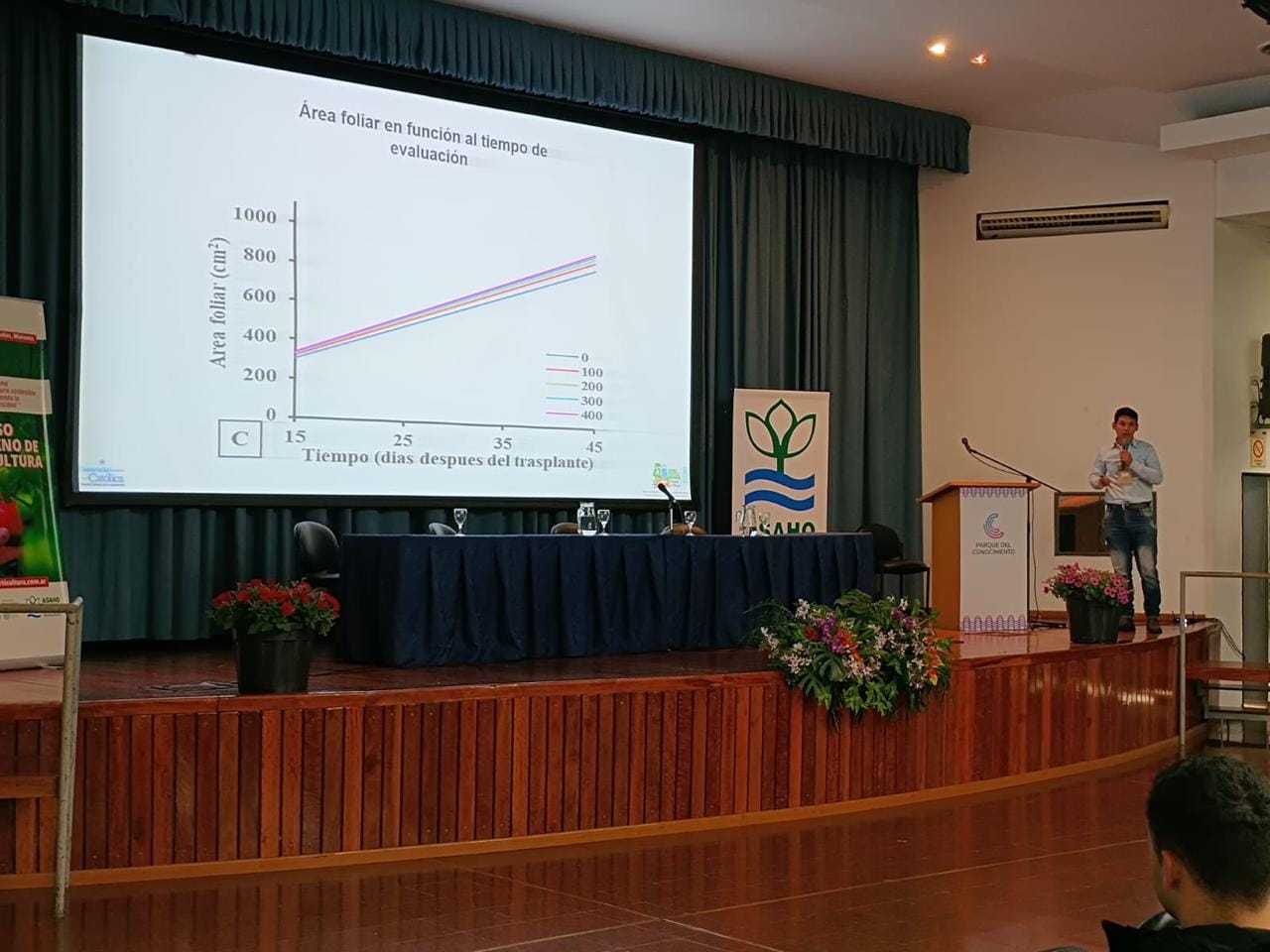 En la ocasión presentó su trabajo titulado «Evaluación del efecto de dosis crecientes de un bioestimulante a base de extracto de vegetales sobre los componentes de rendimiento de la lechuga (Lactuca sativa L.)», investigación realizada como parte de su trabajo final de grado en la Unidad Pedagógica María Auxiliadora.