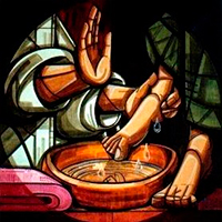 Termina la cena y alguien tiene que levantarse a lavar los platos. Esto es lo ordinario en casa. Pero Cristo va más allá: se levanta, se quita el manto –signo de su dignidad– pero no lava platos: lava pies… Toma el puesto del sirviente. Quiere llegar al fondo de la humildad.