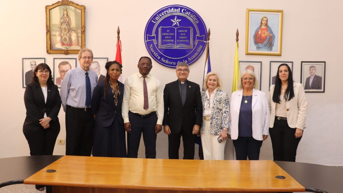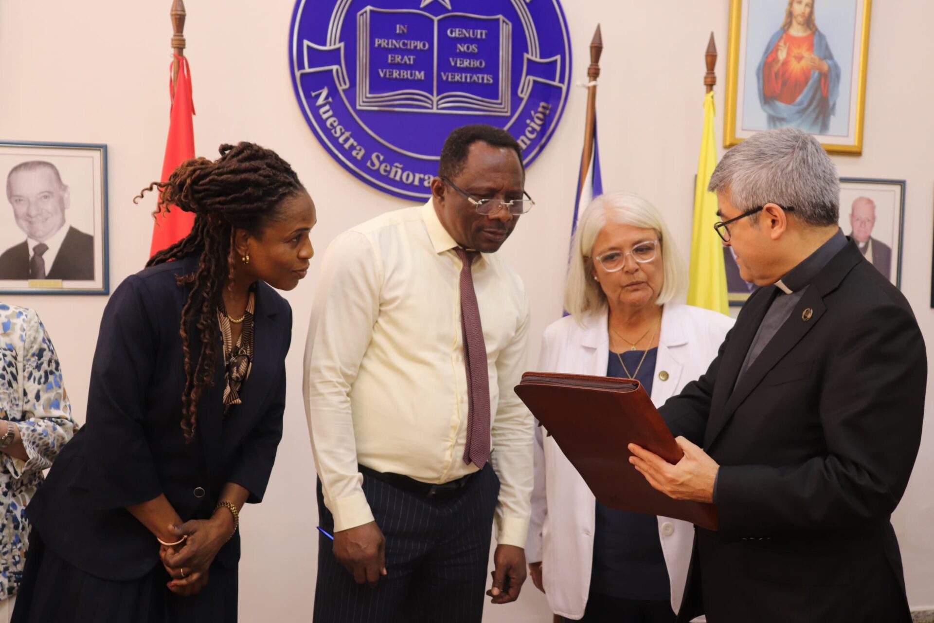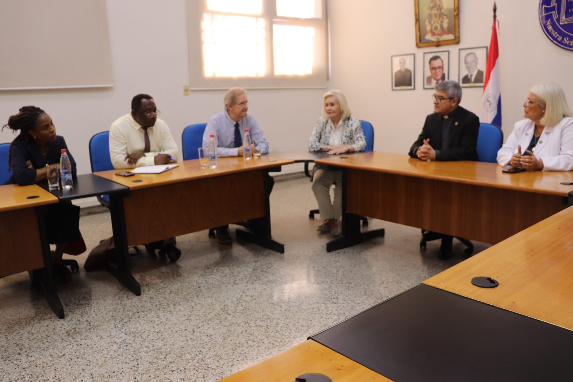 En un encuentro celebrado en la Universidad Católica «Nuestra Señora de la Asunción», el Rector Pbro. Dr. Narciso Velázquez Ferreira, junto con autoridades académicas de la institución, recibió al Rector de Honu University, el Sr. Jean Zoza-O-Lipesu, proveniente de la República Democrática del Congo. Este encuentro marca un paso significativo hacia el desarrollo de un acuerdo de colaboración internacional orientado a la formación de médicos especialistas en oftalmología provenientes del país africano.