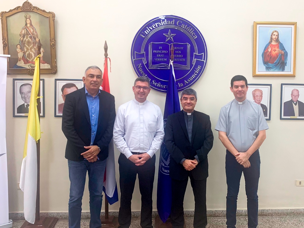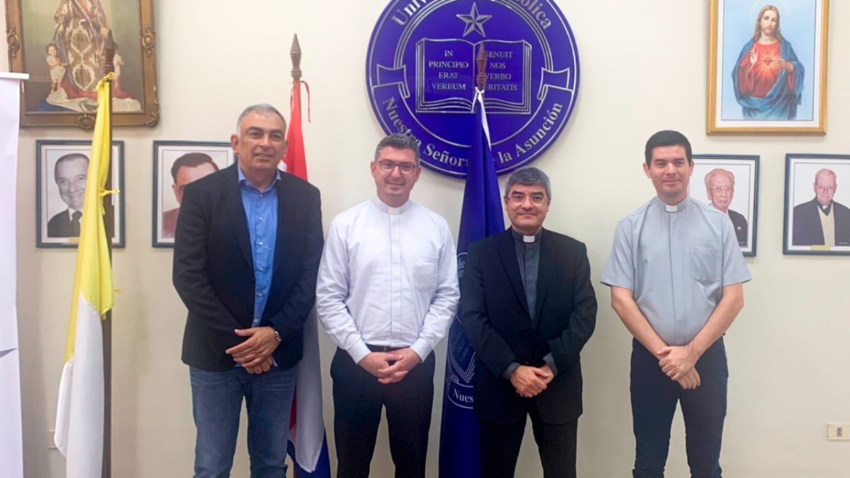 El Rector de la Universidad Católica “Nuestra Señora de la Asunción”, Pbro. Dr. Narciso Velázquez Ferreira, recibió, en la Sala de Sesiones del Rectorado, la visita del Director de la Facultade Católica de Anápolis de Brasil, Pe. Fábio Aparecido Barbosa en el Rectorado de la UC, donde tuvieron un ameno encuentro con la intención de acercar a ambas instituciones para el desarrollo de proyectos conjuntos de cooperación interinstitucional e internacional.
