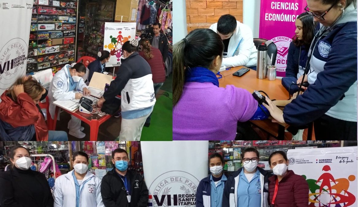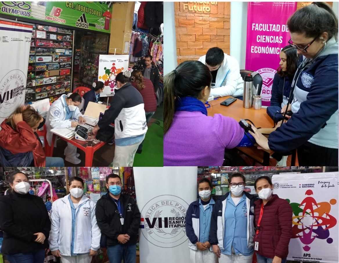En el marco de lanzamiento de la Campaña MMM 2022 (Mayo: Mes de la Medición 2022) alumnos de Enfermería del Campus Universitario Itapúa realizaron controles de presión arterial en la Feria Municipal «La Placita» el pasado 3 de mayo. La actividad fue organizada por la VII Región Sanitaria del Ministerio de Salud y Bienestar Social.