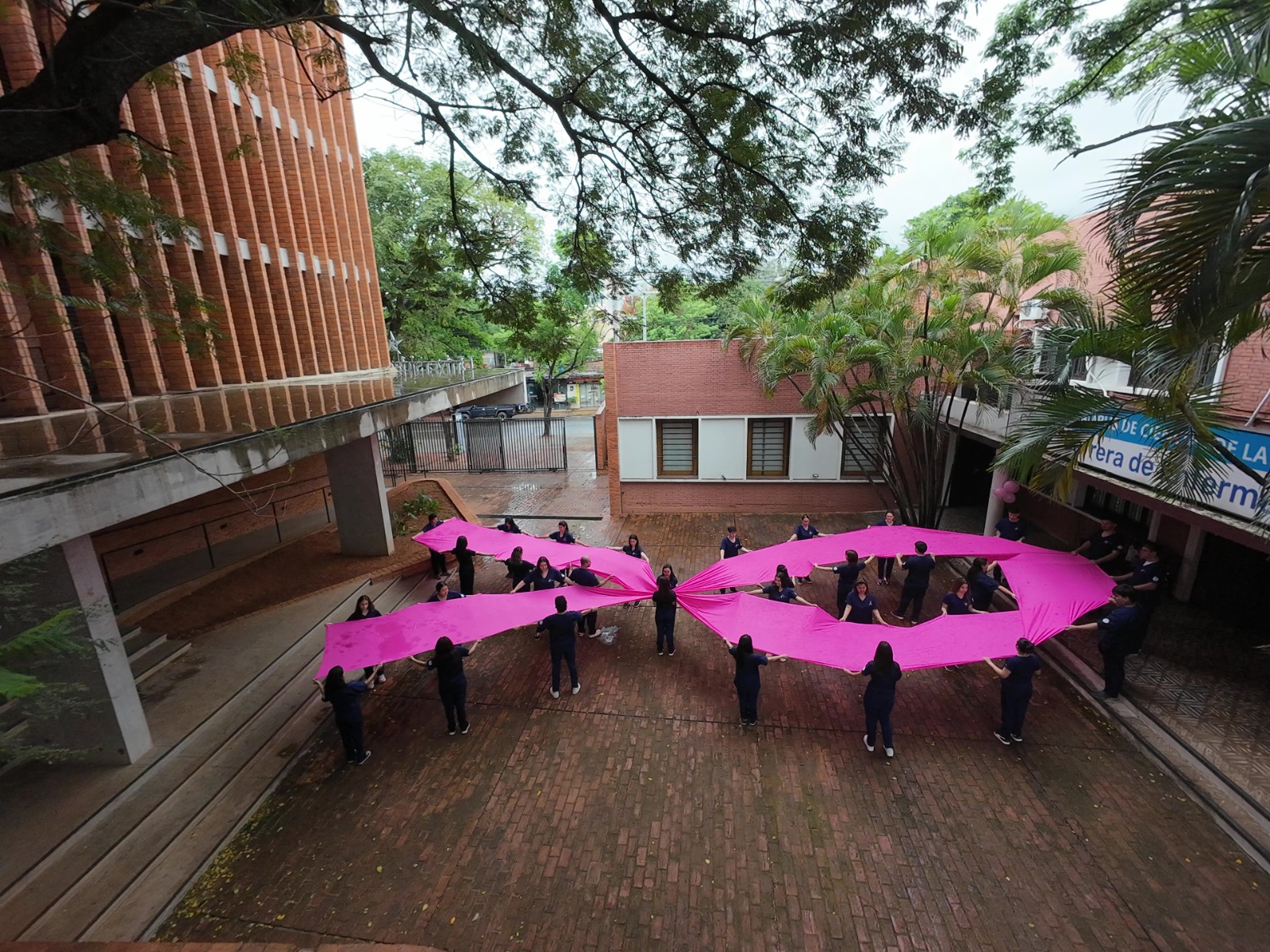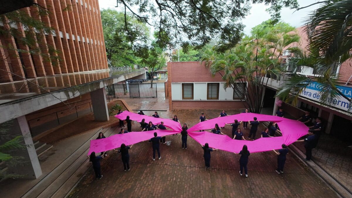 El pasado viernes 18 de octubre, 33 estudiantes del segundo curso de la carrera de Enfermería del Campus Asunción de la Universidad Católica se unieron en una iniciativa inspiradora para sensibilizar a la comunidad sobre el cáncer de mama. Como parte de un proyecto de extensión universitaria, los estudiantes formaron un lazo rosa de 30 metros, símbolo mundial utilizado para crear conciencia sobre el cáncer de mama.
