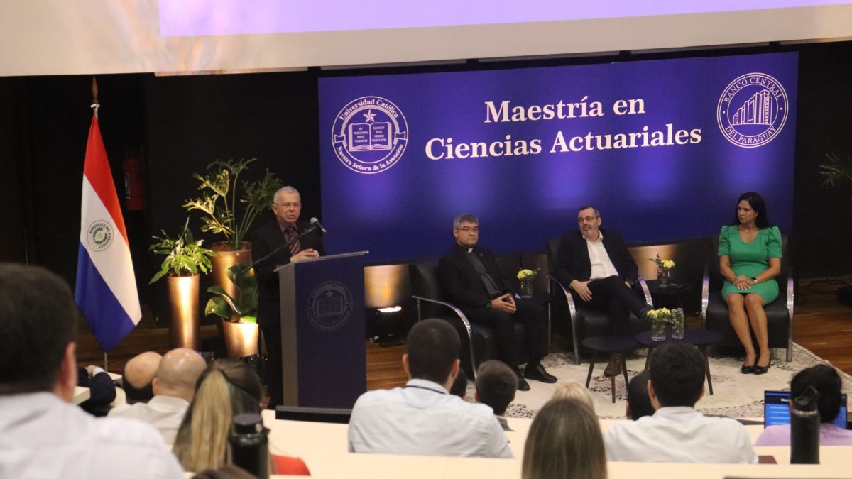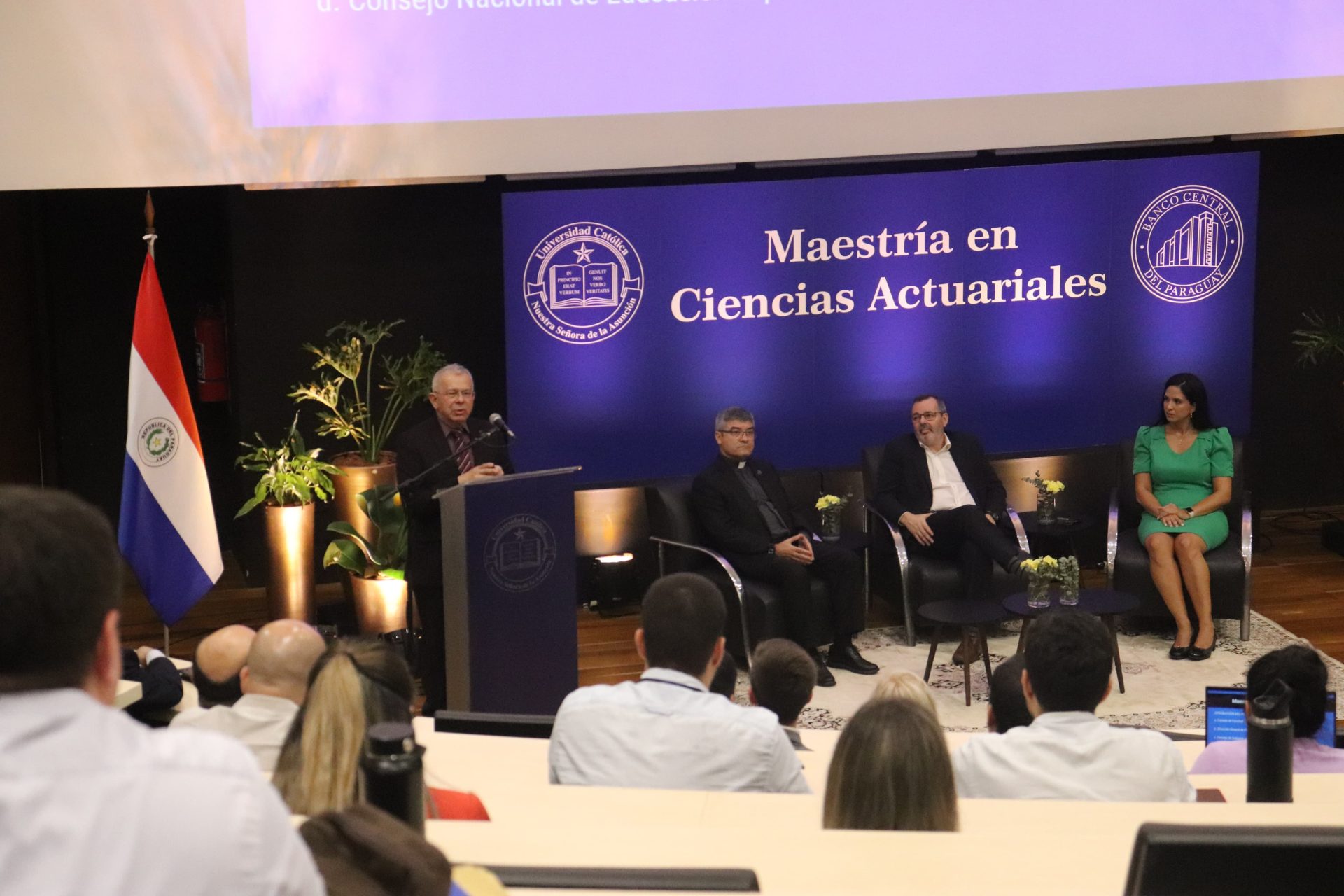 Se realizó el exitoso lanzamiento y primer día de clases de la Maestría en Ciencias Actuariales, ofrecida por la Facultad de Ciencias Contables, Administrativas y Económicas del Campus Asunción, en el marco del convenio firmado por la UC y el Banco Central del Paraguay. La ceremonia de apertura contó con la distinguida presencia del Dr. Carlos Carvallo Spalding, Presidente del Banco Central del Paraguay, la Dra. Adriana Bernal Lugo, Superintendenta de Seguros del BCP y el Rector Pbro. Dr. Narciso Velázquez Ferreira. de la Universidad Católica.