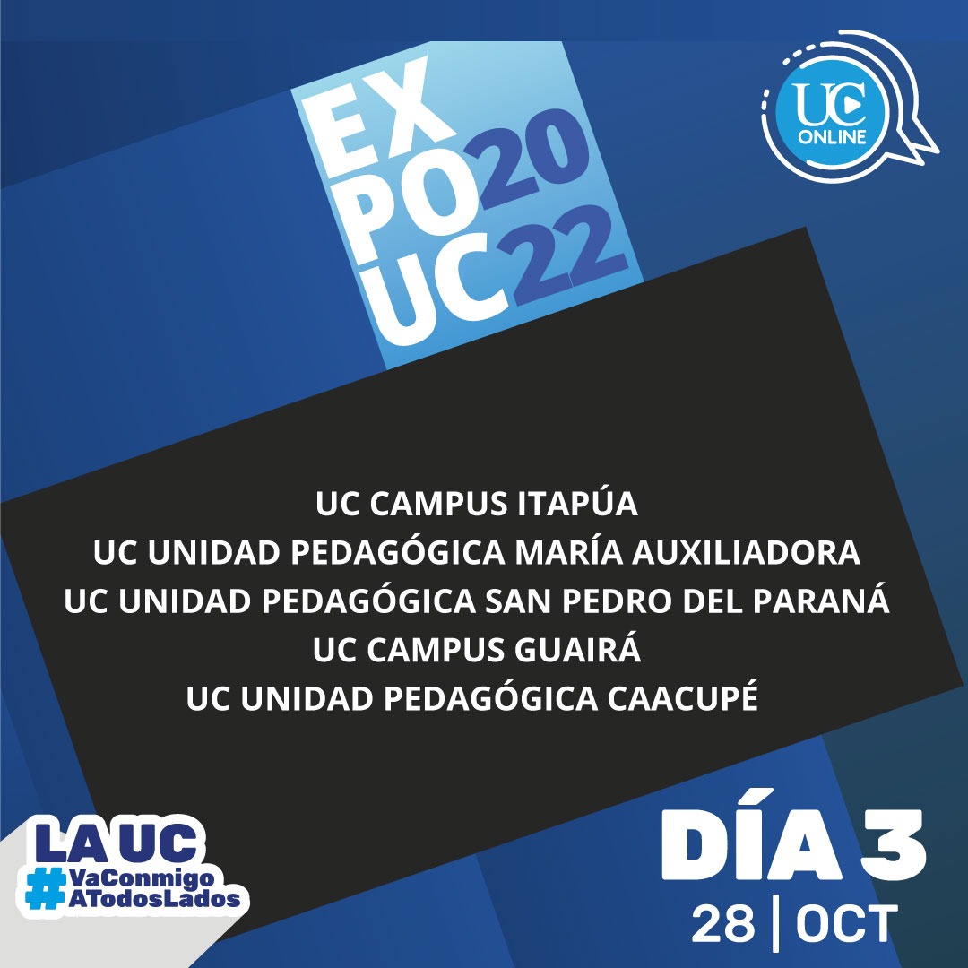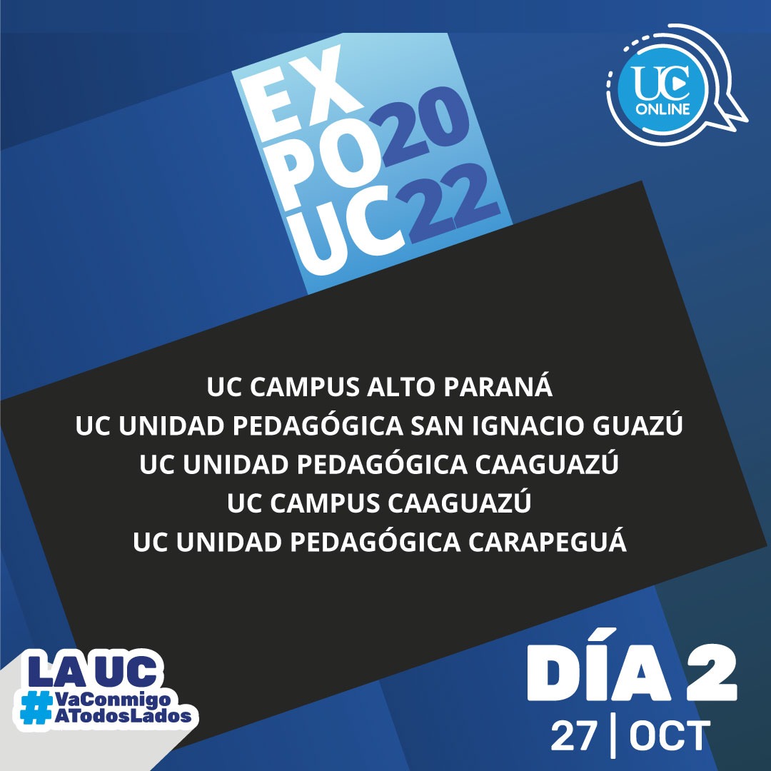 La Universidad Católica “Nuestra Señora de la Asunción» organiza una nueva edición virtual de la Expo Carreras UC, de cara a la próxima convocatoria 2022, un espacio que tiene por finalidad dar a conocer a estudiantes de Nivel Medio, docentes, padres de familia y personas interesadas, las propuestas académicas de esta alta casa de estudios, en cada una de las sedes que la conforman en todo el territorio nacional.