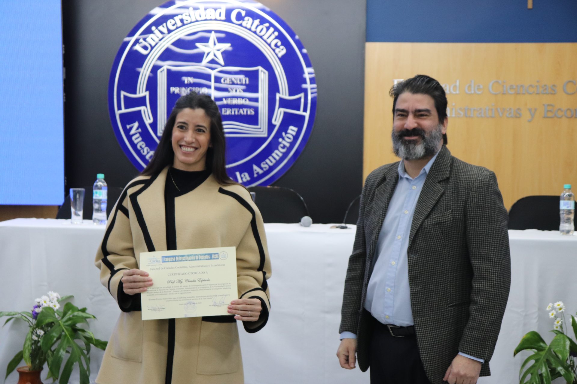 Para cerrar la jornada, los directores de carrera de la FCCAE presentaron su informe técnico en la voz de la directora de la carrera de Marketing, Lic. Claudia Espínola. Destacaron que por decisión del Consejo de Facultad, y jurado del Congreso, se decidió premiar a todos los trabajos presentados en esta edición, destacando y valorando la dedicación de los docentes, la calidad de los trabajos e importancia de los temas investigados, entregando distinciones y distribuyendo el premio en efectivo contemplado, de manera equitativa entre los 6 trabajos presentados (1 por cada investigador, y que no ocupe cargos directivos de la UC)