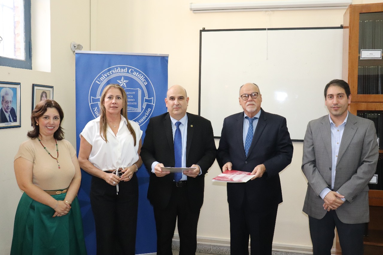Los firmantes del presente convenio fueron el decano de la FCJD Campus Asunción, Dr. César Rufinelli, Notario Gustavo Benítez Sober, Presidente del Colegio de Escribanos del Paraguay y la Secretaria de Relaciones, Notaria Katia Ayala.