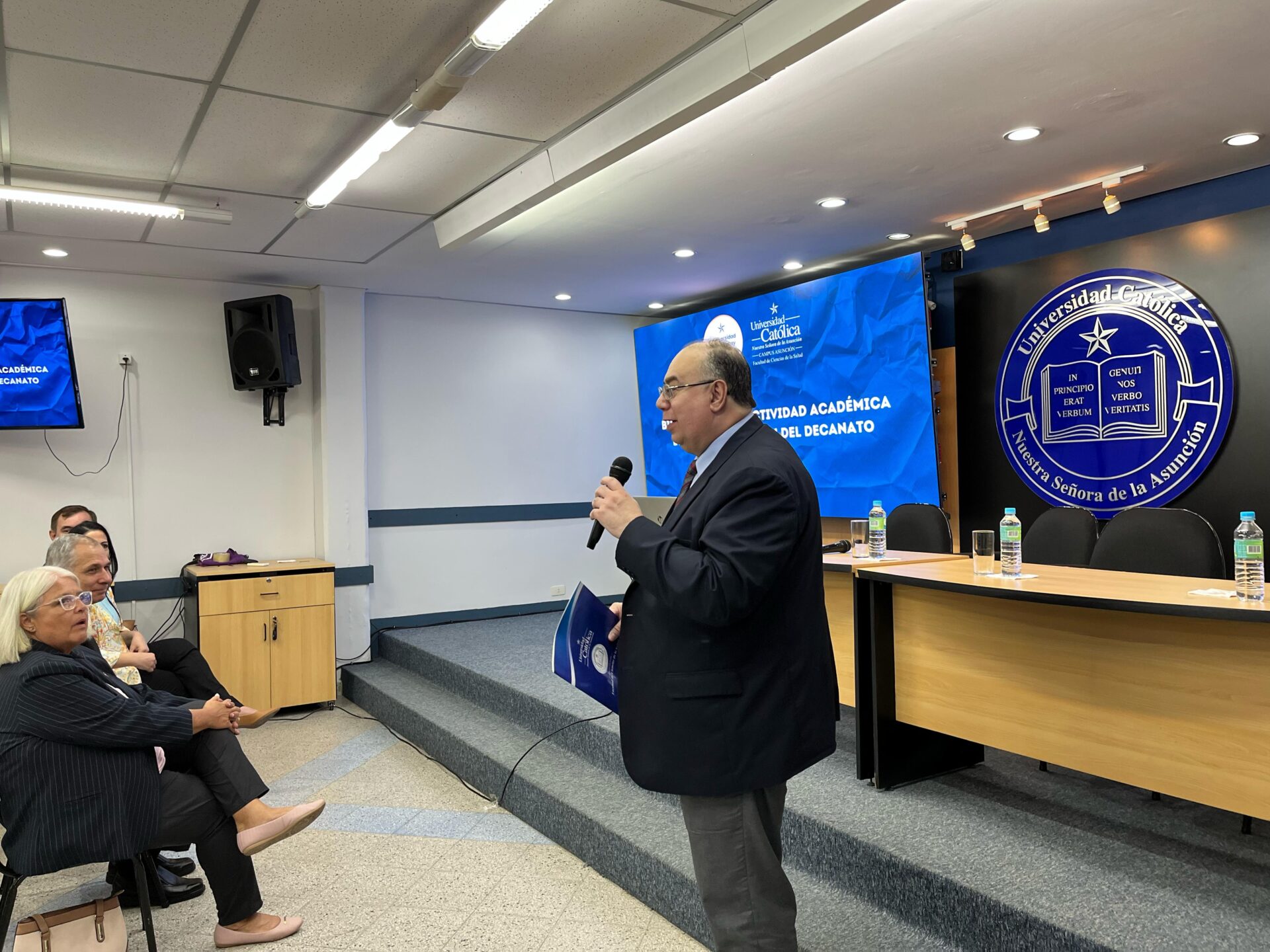 La actividad inició con la Master Class sobre «Inteligencia Artificial como apoyo a la docencia», presentada por el Dr. Luis Benítez, secretario de la Sociedad Paraguaya de Inteligencia Artificial y coordinador del Grupo de Investigación en Innovación Gubernamental y Transformación Digital.