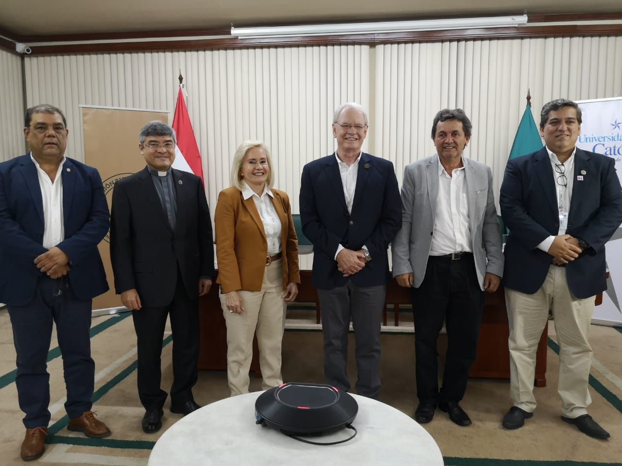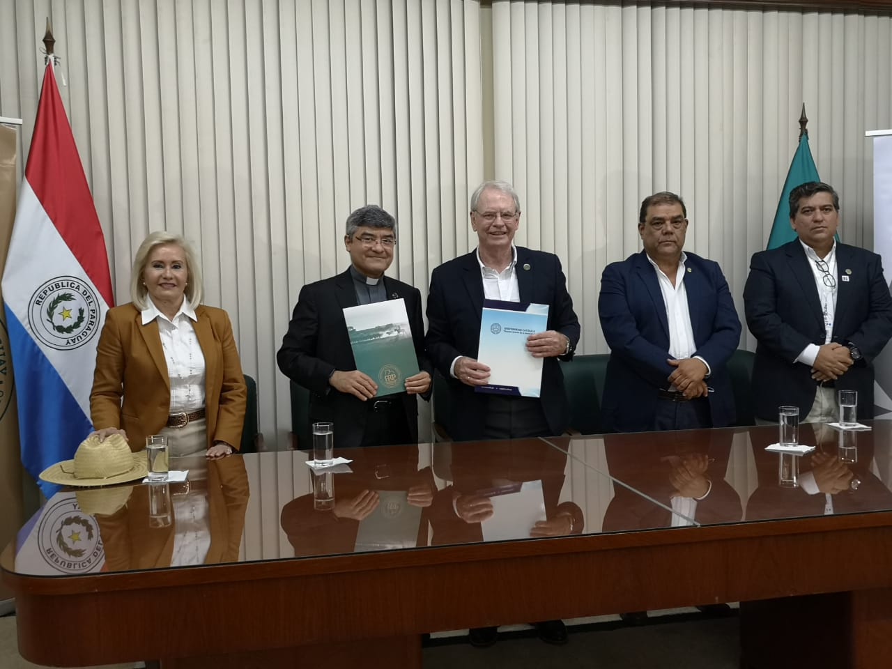 La Universidad Católica «Nuestra Señora de la Asunción» y la Asociación Rural del Paraguay acordaron llevar adelante actividades de cooperación e intercambio interinstitucional que se plasmarán en convenios específicos suscriptos con el objetivo de promover la producción científica y el desarrollo de proyectos y programas. Firmaron el convenio de marco de cooperación, en representación de la UC, el Pbro. Dr. Narciso Velázquez Ferreira, Rector y el Dr. Pedro Galli Romañach, presidente de la ARP.