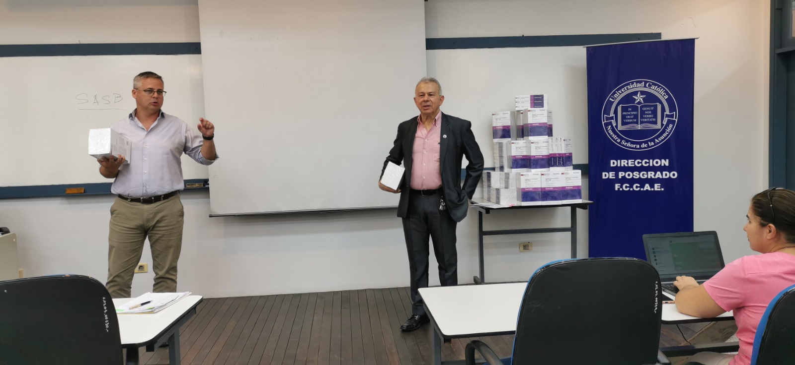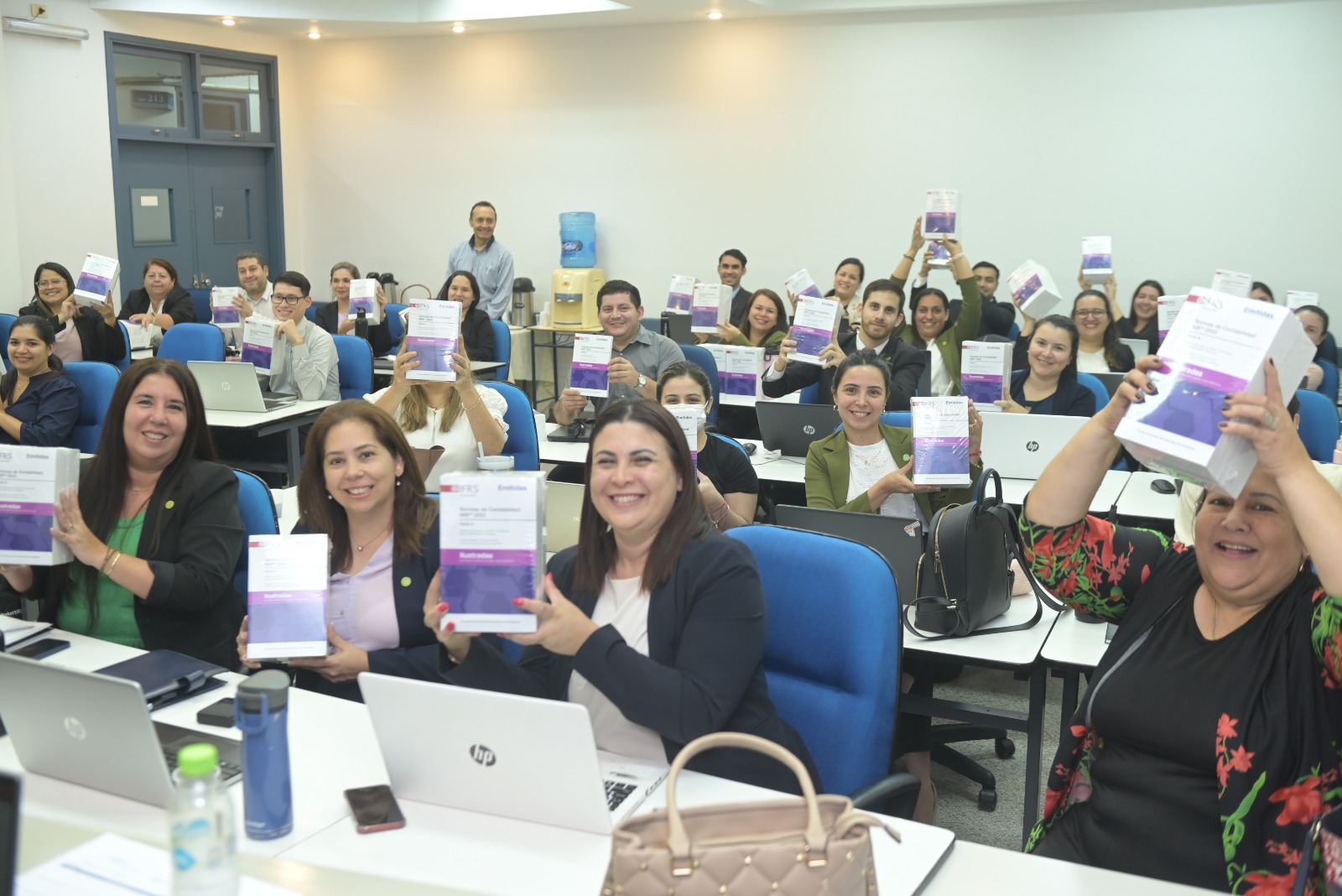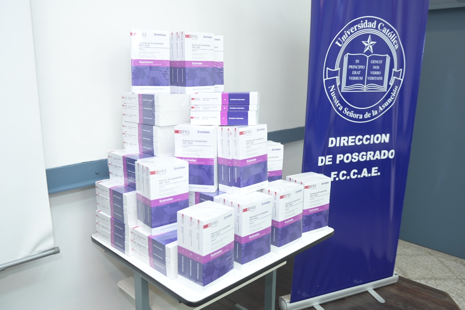 En el marco de desarrollo del Programa del Diplomado en Normas de Información Financiera NIIF (2da Edición y 3ra Edición) se realizó la entrega de los libros de las “Normas de Contabilidad NIIF 2023. Ilutradas” en el aula de Posgrado de la Facultad de Ciencias Contables, Administrativas y Económicas de la Universidad Católica – Campus Asunción.