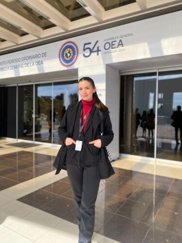 Gabriela agradece el apoyo y la guía constante de sus docentes, quienes la han orientado en cada paso de su camino profesional. «Los profesores me fueron guiando también con notas de referencia», destaca. Finalmente, Gabriela anima a todos los estudiantes interesados en el ámbito internacional a que se atrevan a perseguir estas oportunidades, ya que son experiencias sumamente enriquecedoras para quienes desean construir un futuro en la diplomacia.