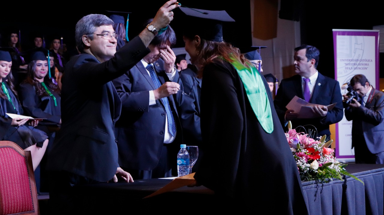 El viernes 22 de noviembre se realizó el acto de Graduación de la Promoción «Abrazarse a Cristo Jesús, para dar mucho fruto» en el Tercer año del Trienio de la Juventud, de la Facultad de Ciencias Contables, Administrativas y Económicas del Campus Asunción.