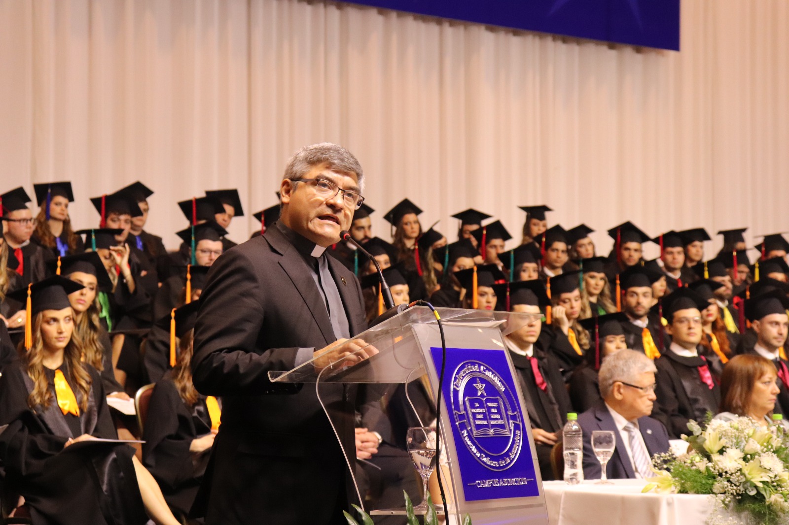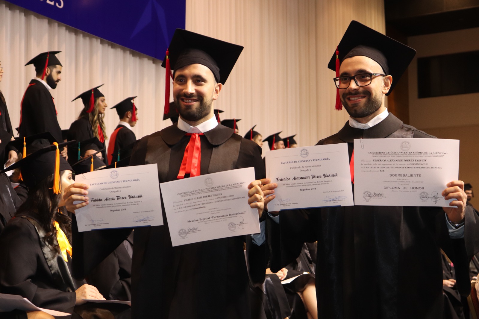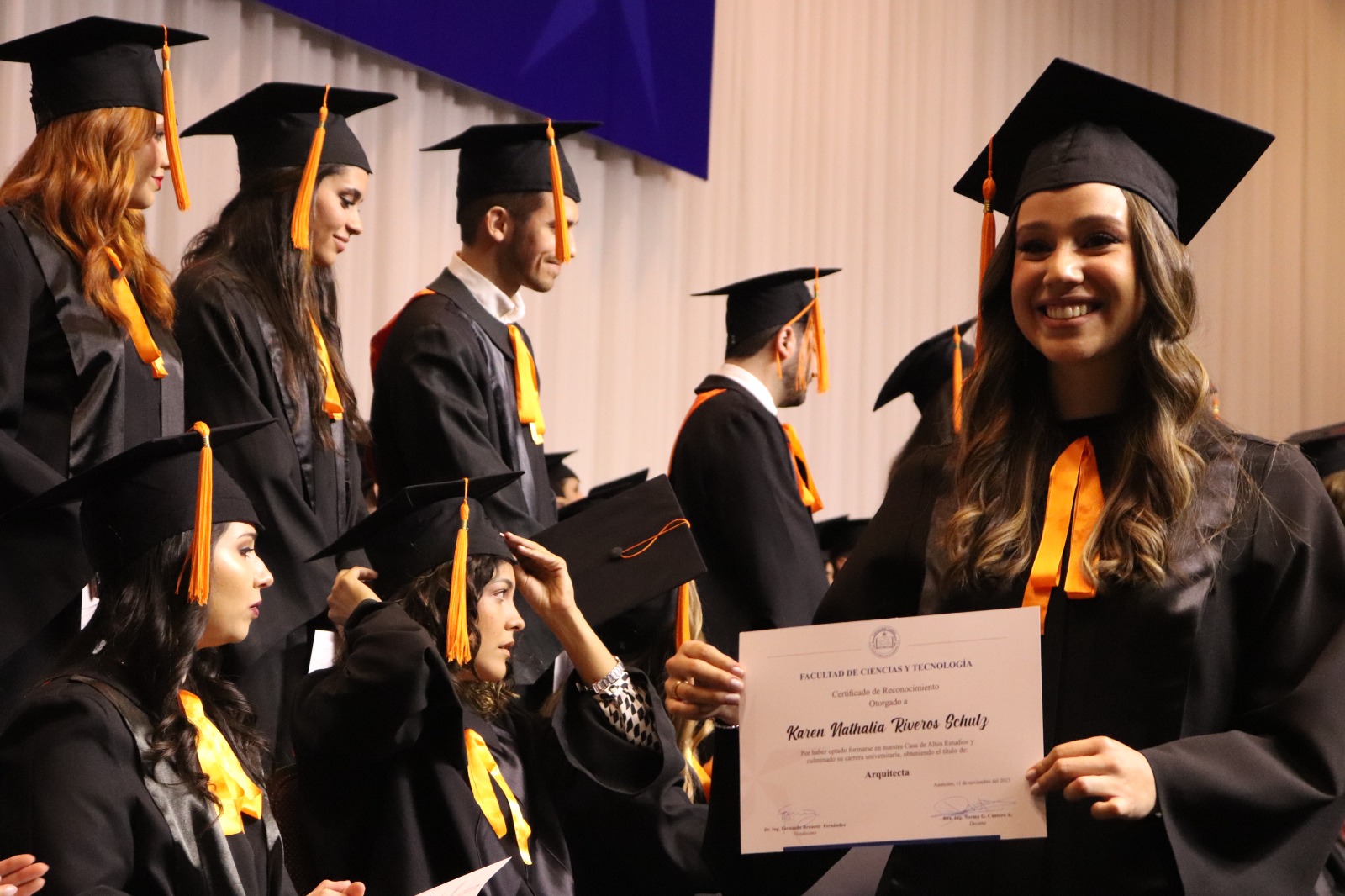 El acto de Graduación de las promociones 2022-2023 «Al instante se pusieron en camino a anunciar a Cristo», de las carreras de Análisis de Sistemas, Diseño Gráfico e Industrial, Arquitectura, Ingeniería Civil, Ambiental, Industrial, Informática y Electrónica de la Facultad de Ciencias y Tecnología- Campus Universitario Asunción, fue celebrado el sábado 11 de noviembre, en dos momentos, el primero por la mañana con la Misa de Acción de Gracias en la Catedral Metropolitana de Asunción y posteriormente en horas de la tarde la entrega de títulos y menciones honoríficas a alumnos destacados y sobresalientes.