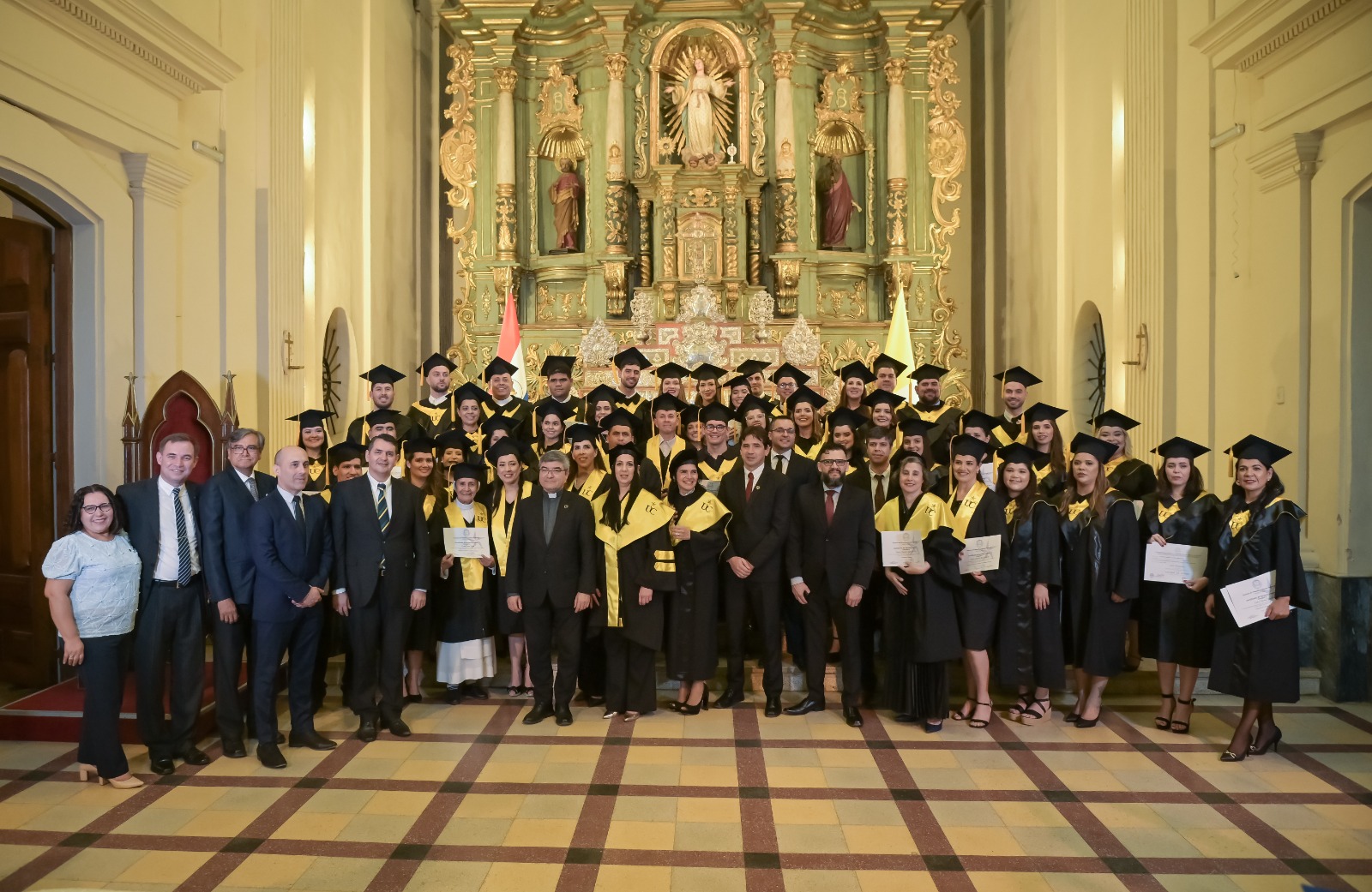 Egresados de la Facultad de Filosofía y Ciencias Humanas del Campus Asunción de las Promociones 2004 al 2023 recibieron su diploma de egreso y menciones honoríficas a alumnos destacados y sobresalientes durante la celebración de la Ceremonia de Graduación realizada en la Catedral Metropolitana de Asunción, el viernes 10 de noviembre de 2023.