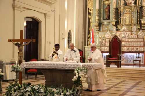 El sábado 4 de junio se celebró la ceremonia de graduación de egresados de la Facultad de Ciencias y Tecnología del Campus Asunción Promoción 2020 Año de la Palabra de Dios, Tiempo de Gracia «Nos ardía el corazón, cuando nos explicaba las Escrituras». El acto tuvo dos momentos, el primero, la Misa de Acción de Gracias en la Catedral Metropolitana de Asunción que fue presidida por el Monseñor Edmundo Valenzuela, Gran Canciller de la UC y concelebrada por el Padre Bonifacio Romero y el Padre Zenón.