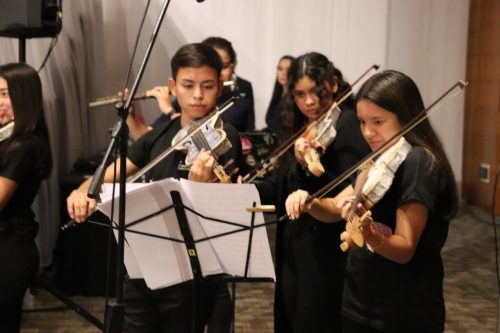 En la apertura del acto se entonó el Himno Nacional interpretado por la Orquesta de Instrumentos