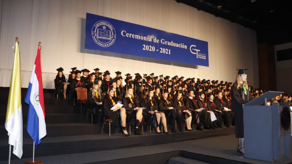 El sábado 4 de junio se celebró la ceremonia de graduación de egresados de la Facultad de Ciencias y Tecnología del Campus Asunción Promoción 2021 Año de la Eucaristía «Lo reconocieron al partir el pan». El acto de graduación se desarrolló en dos momentos, el primero, la Misa de Acción de Gracias en la Catedral Metropolitana de Asunción que fue presidida por el Monseñor Edmundo Valenzuela, Gran Canciller de la UC y concelebrada por el Padre Bonifacio Romero y el Padre Zenón.