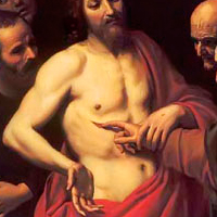 ?Tomás, uno de los Doce, a quien llamaban el Gemelo, no estaba con ellos cuando vino Jesús, y los otros discípulos le decían: “Hemos visto al Señor”. Pero él les contestó:”Si no veo en sus manos la señal de los clavos y si no meto mi dedo en los agujeros de los clavos y no meto mi mano en su costado, no creeré”.
