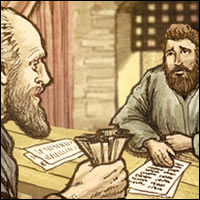 Entonces fue llamando uno por uno a los deudores de su amo. Al primero le preguntó: ‘¿Cuánto le debes a mi amo?’. El hombre respondió: ‘Cien barriles de aceite’. El administrador le dijo: ‘Toma tu recibo, date prisa y haz otro por cincuenta’. Luego preguntó al siguiente: ‘Y tú, ¿cuánto debes?’ Éste respondió: ‘Cien sacos de trigo’. El administrador le dijo: ‘Toma tu recibo y haz otro por ochenta’.