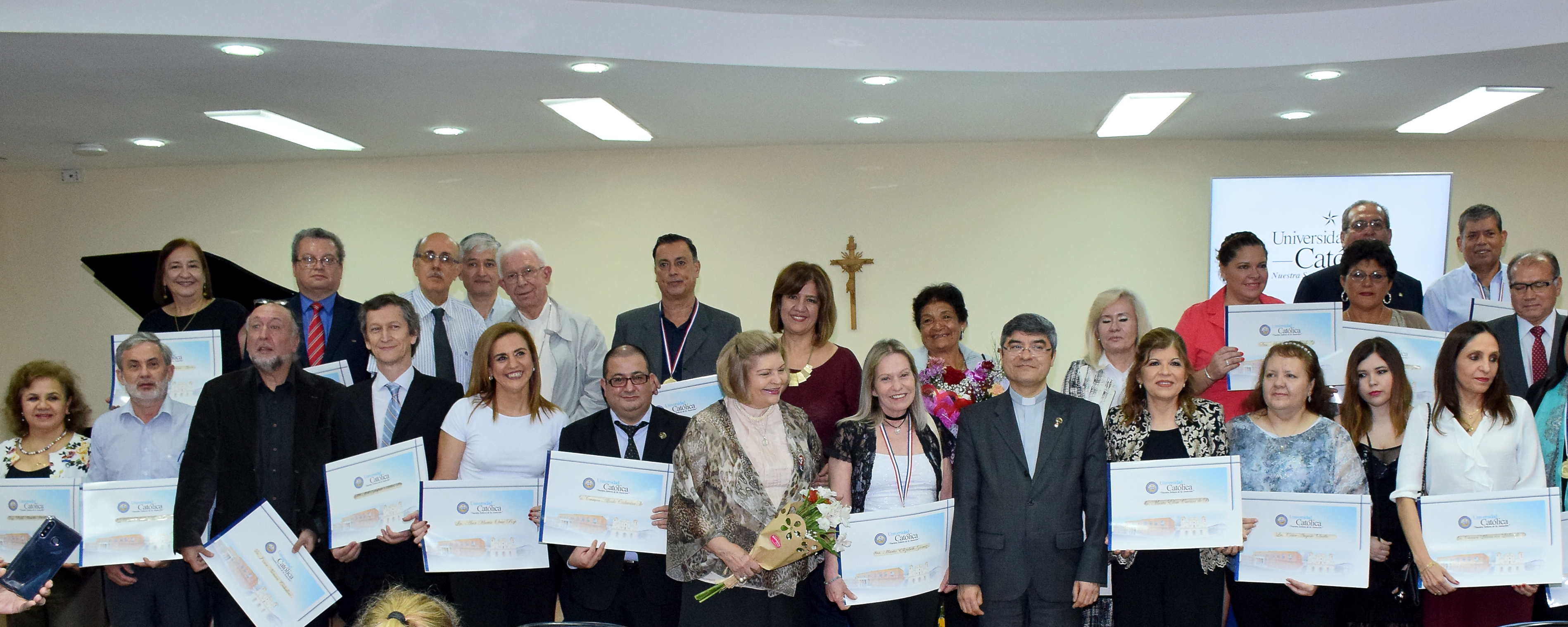Para la ocasión estuvieron presentes oficiando el homenaje el Pbro. Dr. Narciso Velázquez, Rector de la UC, Lic. Teresa de Jesús Servín, Vicerrectora Administrativa; Abogado J. Gabriel Benítez Colnago, Secretario General y el Monseñor Ignacio Gogorza además de los Consejeros Asesores y Directivos.