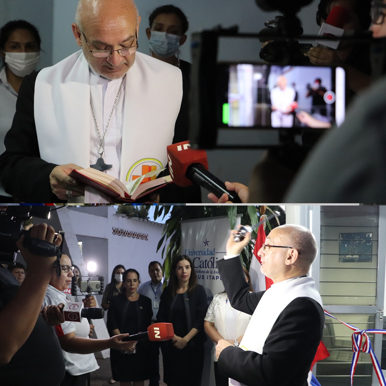 El Monseñor Francisco Pistilli hizo la bendición de la oficina en el acto inaugural.