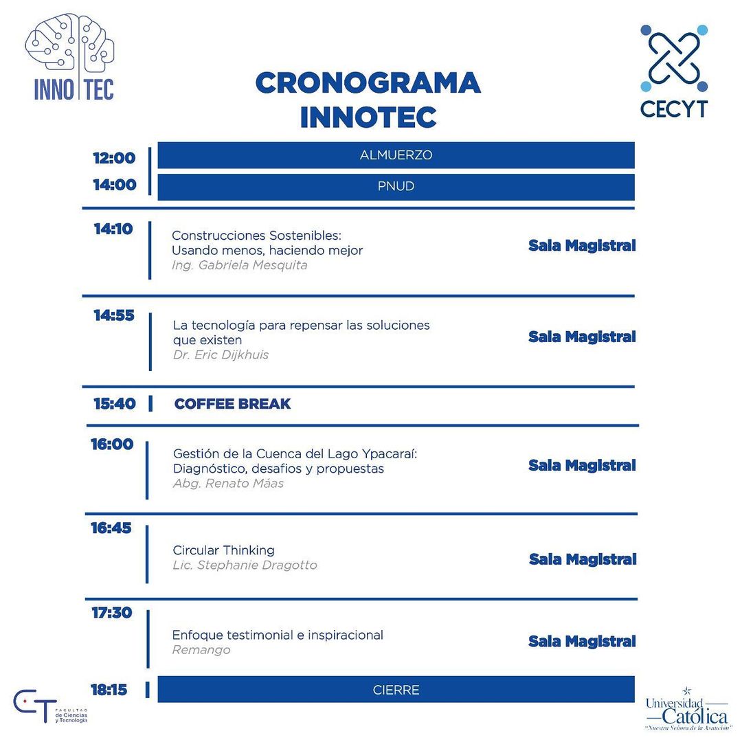 En INNOTEC las charlas estarán basadas en 5 de los 17 objetivos del desarrollo sostenible; ODS de Agua Limpia y Saneamiento, de Energía Asequible y No Contaminante, de Industria, Innovación y Tecnología, de Ciudades y Comunidades Sostenibles, de Producción y Consumo Responsable.