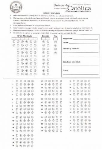 Para los exámenes tendrán la siguiente Hoja de Respuestas: