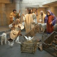 Cuando se acercaba la Pascua de los judíos, Jesús llegó a Jerusalén y encontró en el templo a los vendedores de bueyes, ovejas y palomas, y a los cambistas sentados con sus mesas. Entonces hizo un látigo de cordeles y los echó del templo, con todo y sus ovejas y bueyes; y a los cambistas les volcó las mesas y les tiró al suelo las monedas; y a los que vendían palomas les dijo: «Quiten todo de aquí y no conviertan en un mercado la casa de mi Padre».