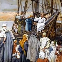 Después de la multiplicación de los panes, cuando Jesús dio de comer a cinco mil hombres, sus discípulos lo vieron caminando sobre el lago. Al día siguiente, la multitud, que estaba en la otra orilla del lago, se dio cuenta de que allí no había más que una sola barca y de que Jesús no se había embarcado con sus discípulos, sino que éstos habían partido solos. En eso llegaron otras barcas desde Tiberíades al lugar donde la multitud había comido el pan. Cuando la gente vio que ni Jesús ni sus discípulos estaban allí, se embarcaron y fueron a Cafarnaúm para buscar a Jesús.