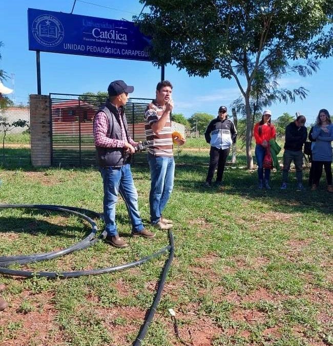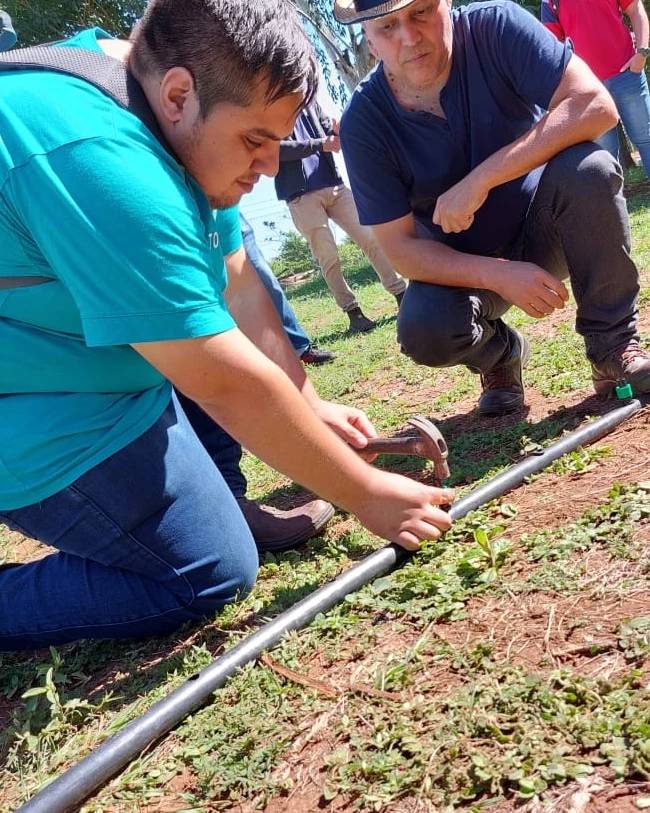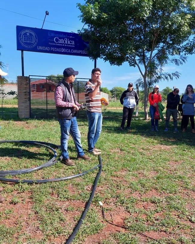 La actividad consistió en instalación de sistema de riego a cargo del Dr. Rodrigo Cabello, director de carrera y el Ing. Agr. Víctor González Caballero.