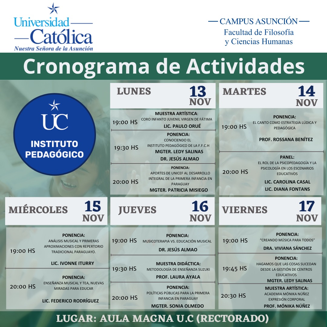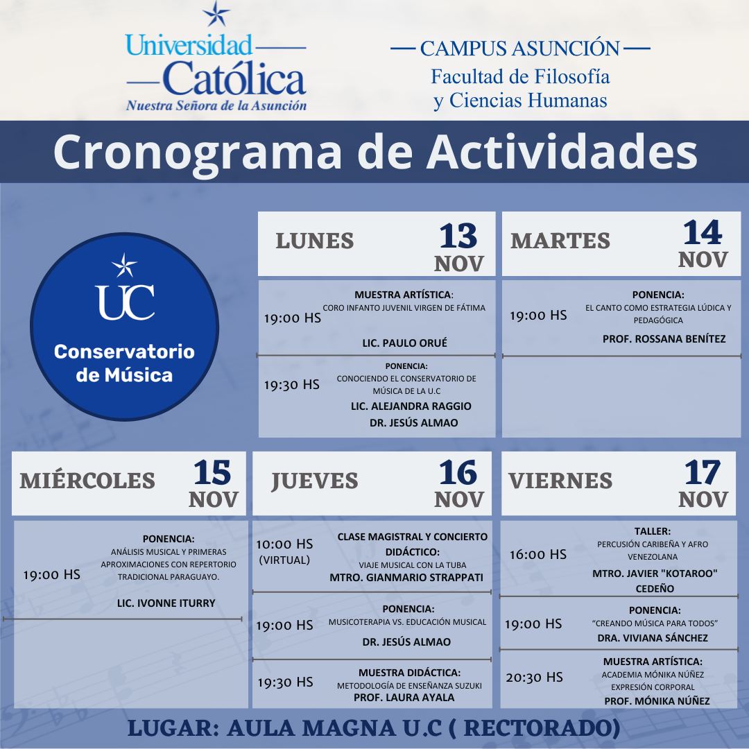 El evento en conjunto está organizado por el Conservatorio de Música y el Instituto Pedagógico de la Universidad Católica y se realiza del 13 al 17 de noviembre, en el Aula Magna del Rectorado.